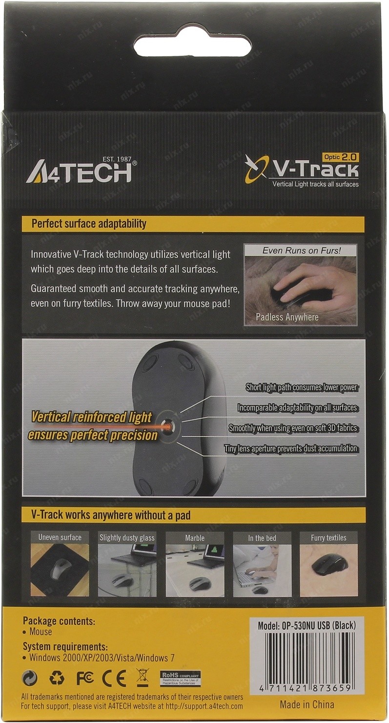 Мышь A4Tech OP-530NU черный оптическая 1200dpi USB 2but