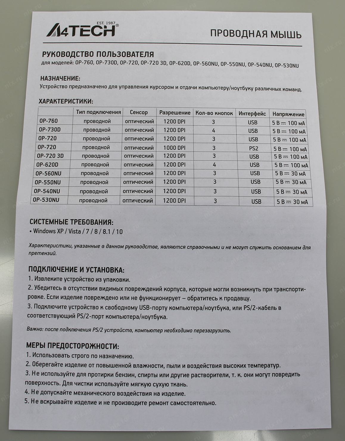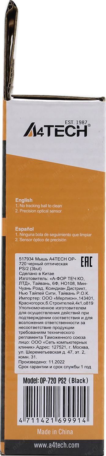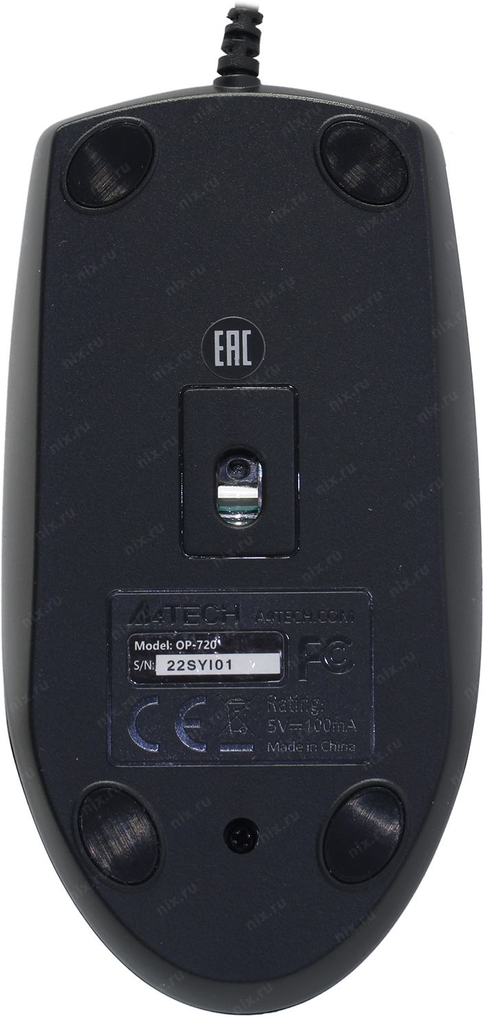 Мышь A4Tech OP-720 черный оптическая 1000dpi PS/2 3but (OP-720 PS2 (BLACK))