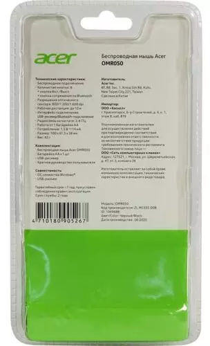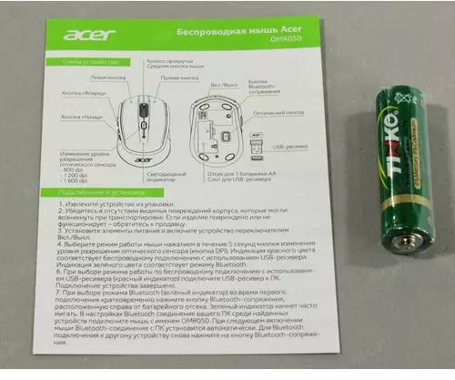 Мышь Acer OMR050 черный оптическая 1600dpi беспров. BT/ Radio USB 6but (ZL.MCEEE.00B)
