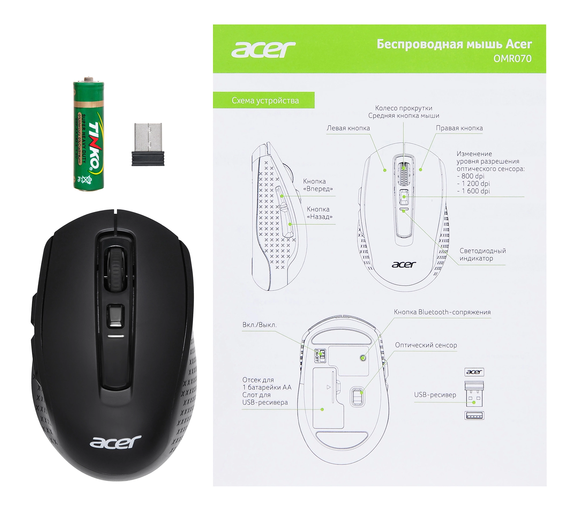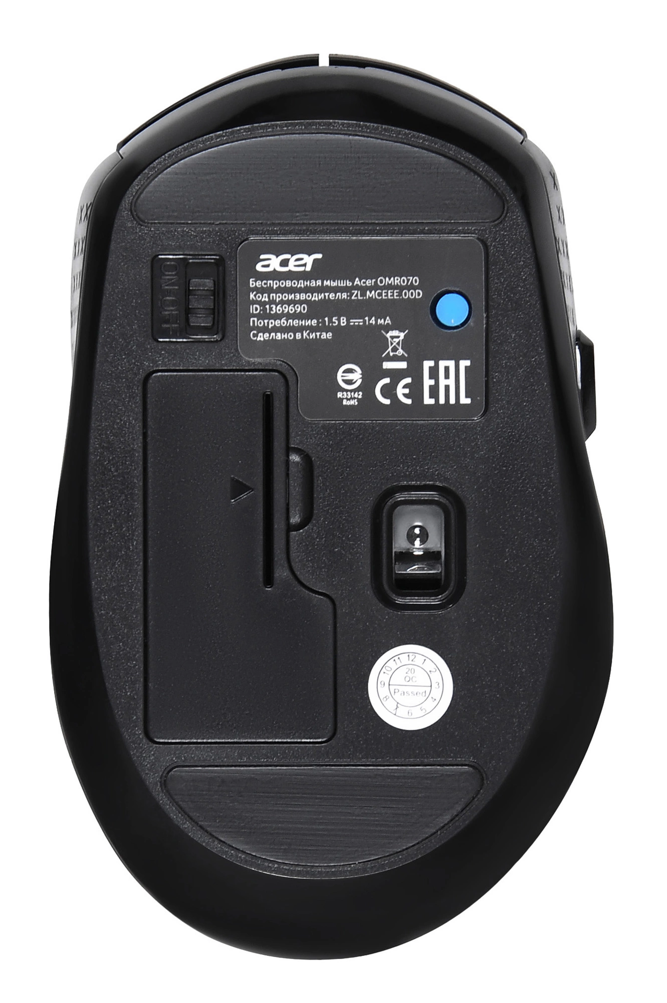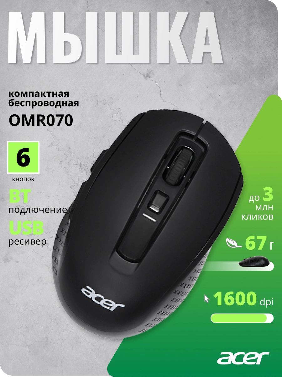 Мышь Acer OMR070 черный оптическая 1600dpi беспров. BT/ Radio USB для ноутбука 6but (ZL.MCEEE.00D)