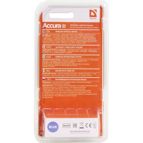 Мышь Defender Accura Wireless Optical Mouse < MM-365> (RTL) USB 6btn+Roll < 52366>