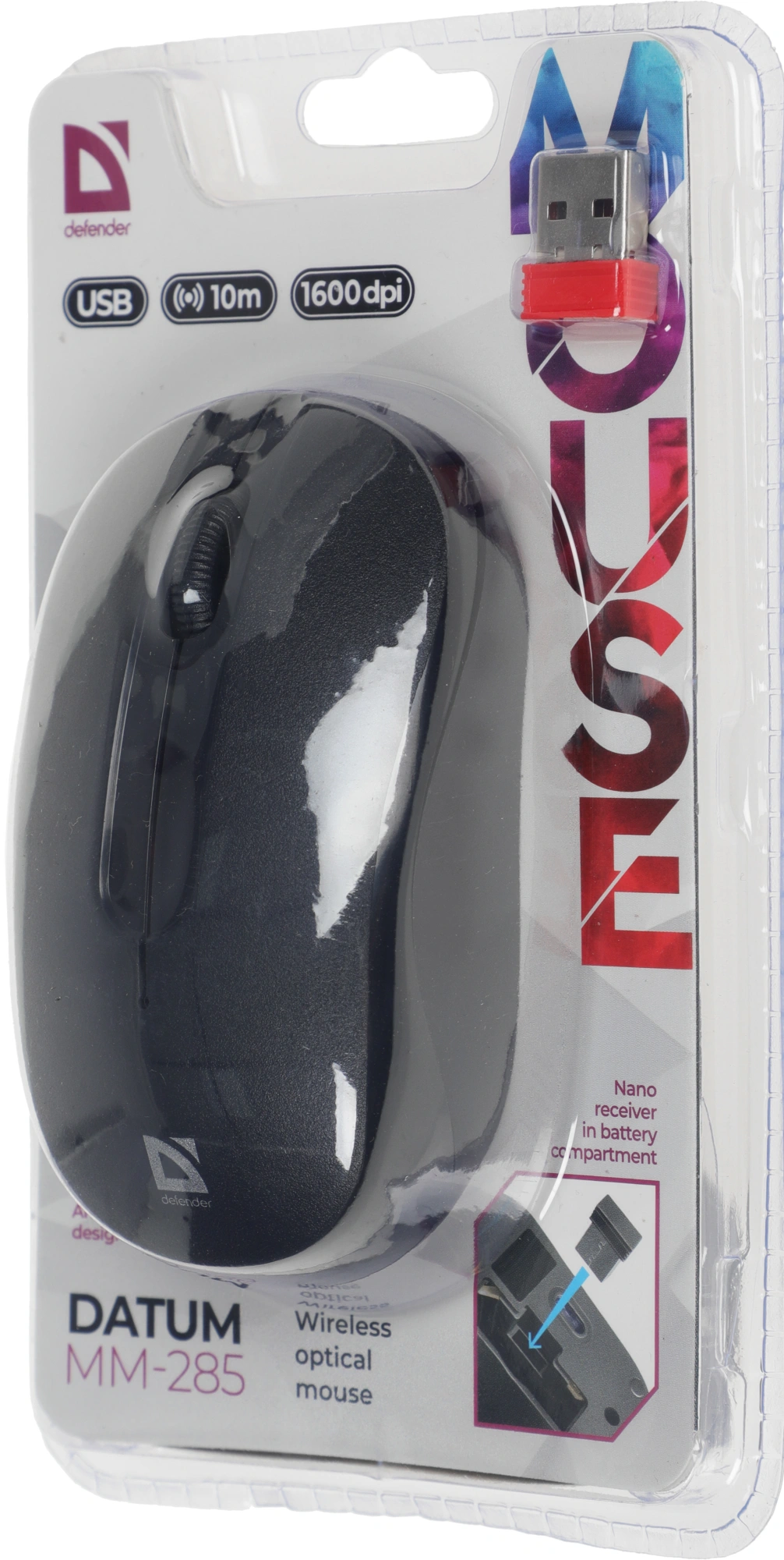 Мышь Defender Datum MM-285 черный оптическая 1600dpi беспров. USB 2but (52285)