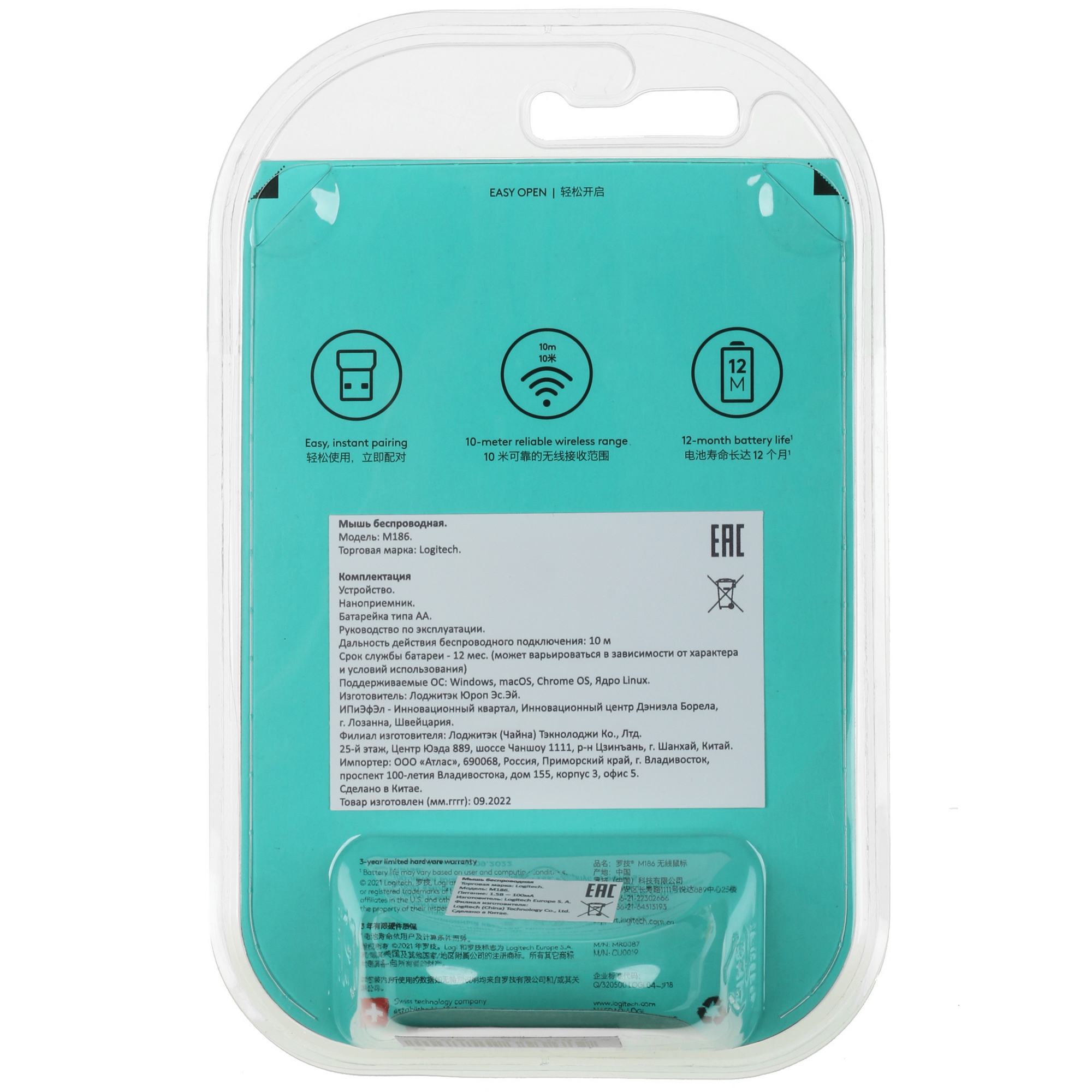 Мышь беспроводная M186 RED 910-004133 LOGITECH