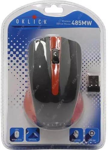 Мышь Оклик 485MW черный/ красный оптическая 1600dpi беспров. USB для ноутбука 3but (997828) OKLICK