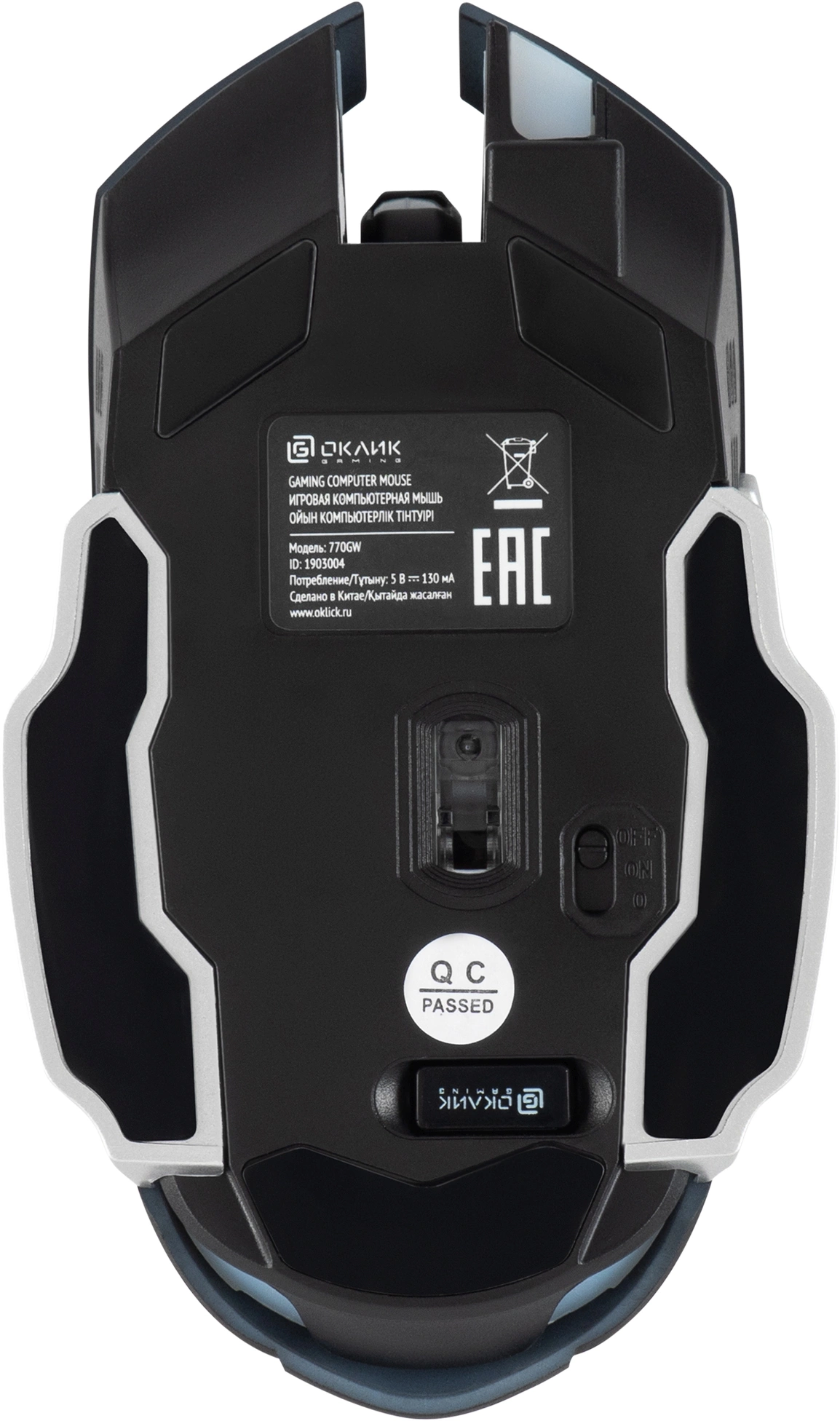 Мышь Оклик 770GW черный/ серебристый оптическая 3600dpi беспров. USB для ноутбука 6but OKLICK