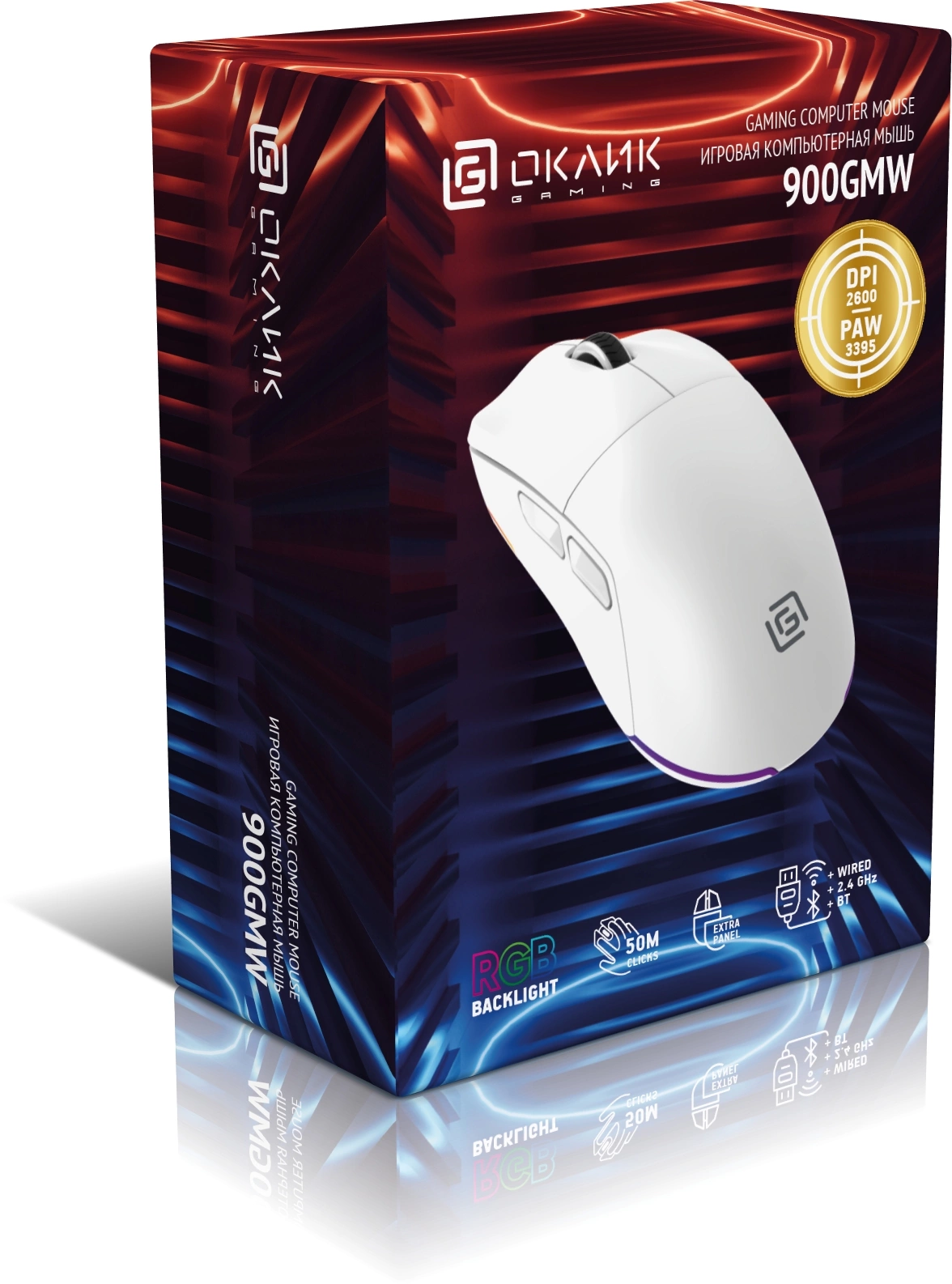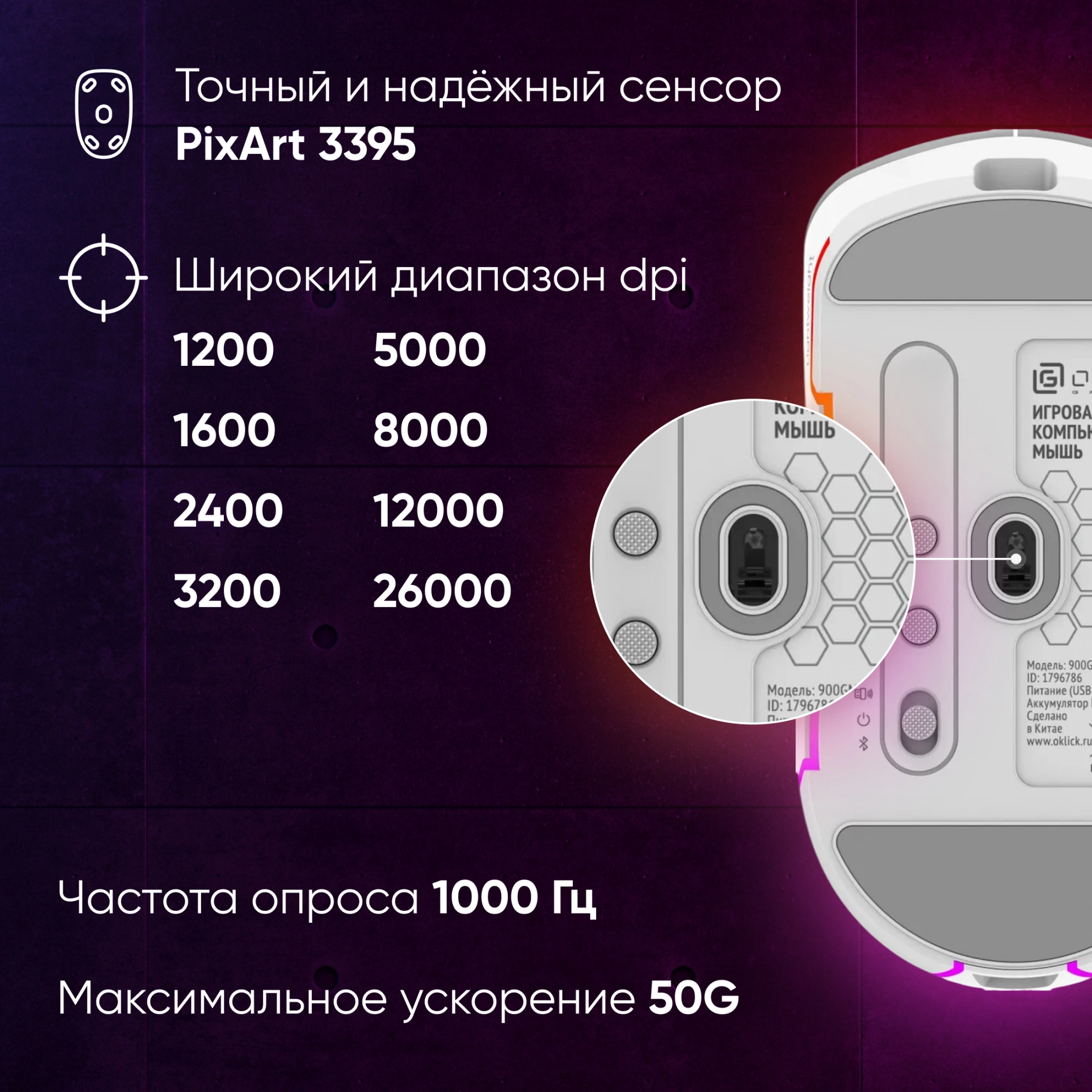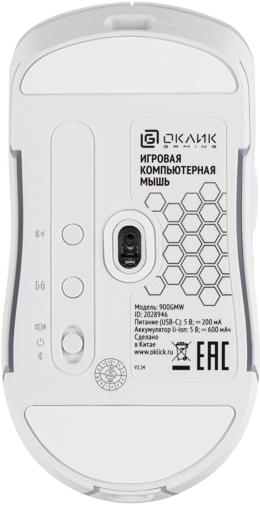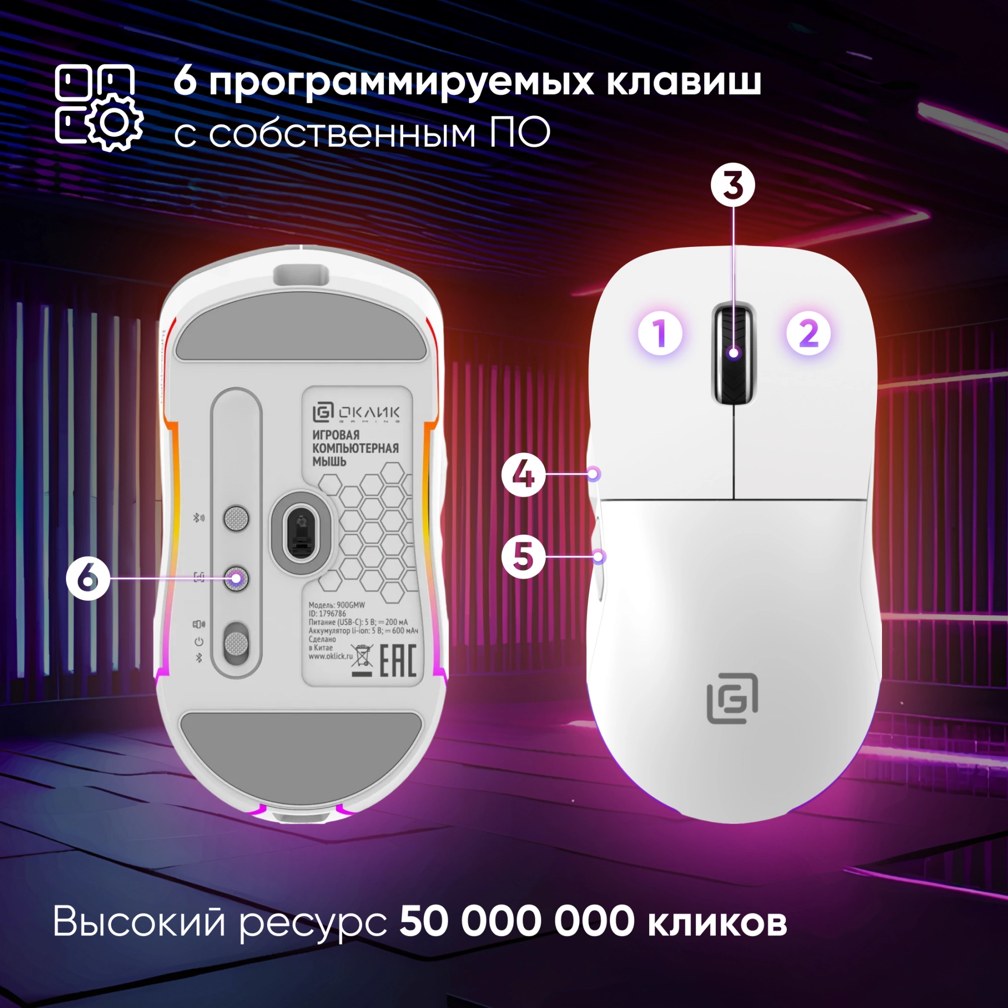 Мышь Оклик 900GMW белый оптическая 26000dpi беспров. BT/ Radio USB 6but OKLICK