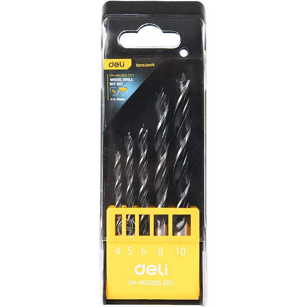 Набор Deli сверл по дереву 5 шт (4/5/6/8/10 мм) DH-MGZ005-ED1 сталь 45#, пласт.кейс