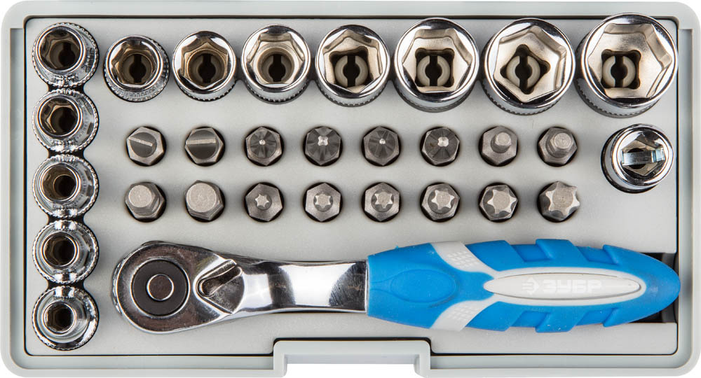 Биты из хромомолибденовой стали. Торцовые головки из высококачественной инструментальной стали. Трещотка оснащена реверсивным храповым механизмом, направление вращения меняется одной рукой. Специальная закалка по особой технологии Шариковый быстросъемный держатель.