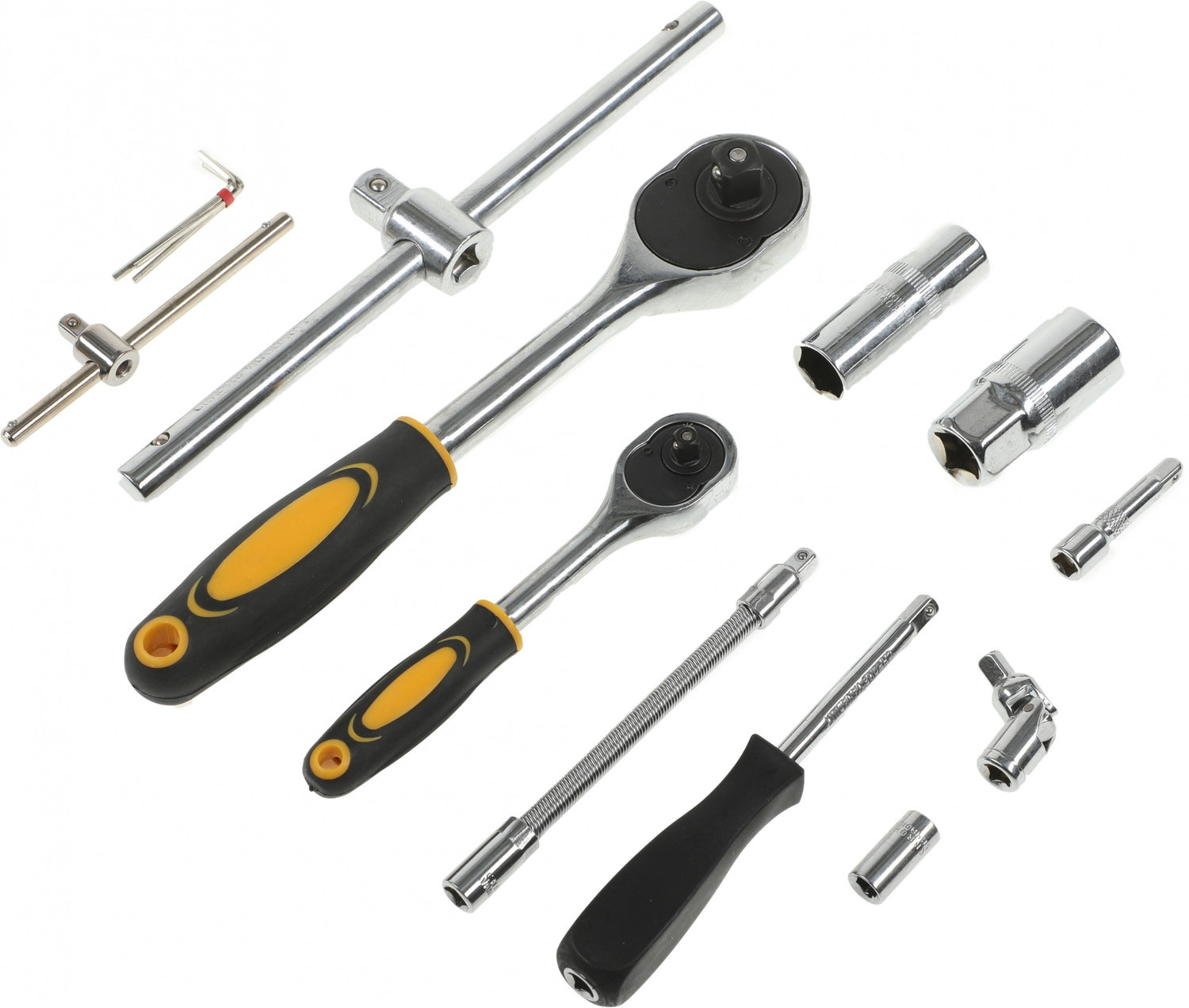 Удлинители 125, 50 мм, гибкий 150 мм Адаптер, вороток Т-образный, карданный шарнир, ключ трещоточный, отверточная рукоятка