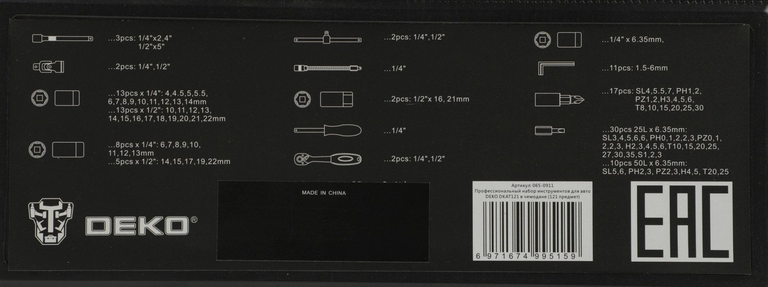Набор инструментов Deko DKAT121 121 предмет (жесткий кейс) 065-0911