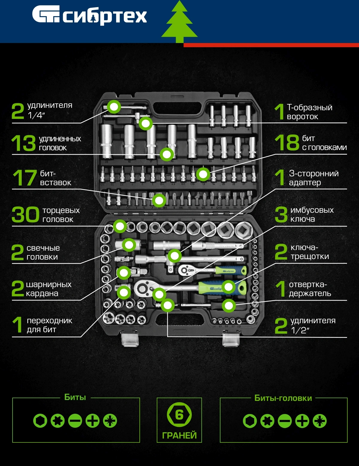 Набор инструментов Сибртех 13389 108 предметов (жесткий кейс)