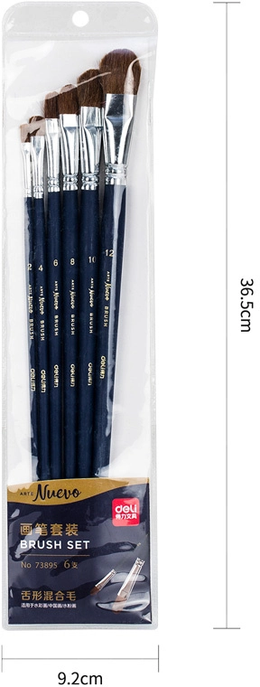 Набор кистей Deli 73895 Nuevo плоск. дерев.лакир.ручка (продается кратно 12 шт.)