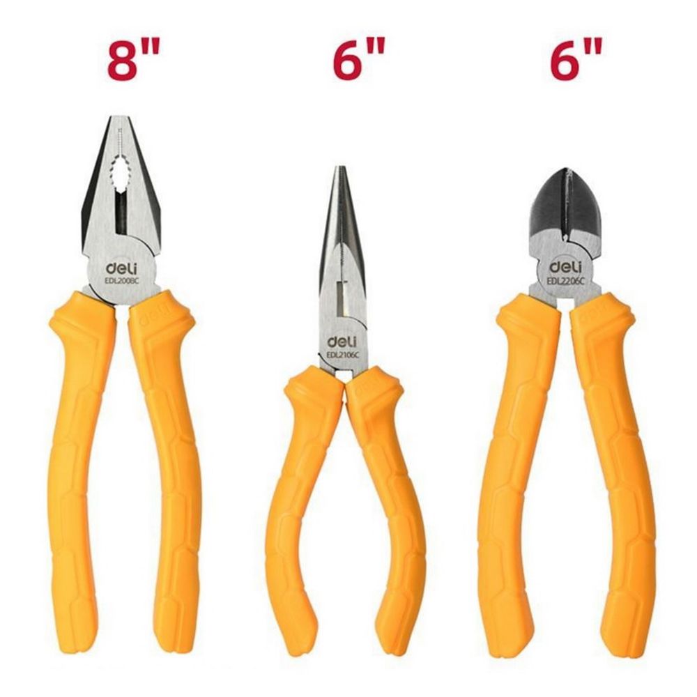 Набор плоскогубцев Deli DL2008C-3 (комбинированные плоскогубцы 200мм, удлиненные плоскогубцы 160мм, диагональные бокорезы 160мм, однокомпонентная ручка)