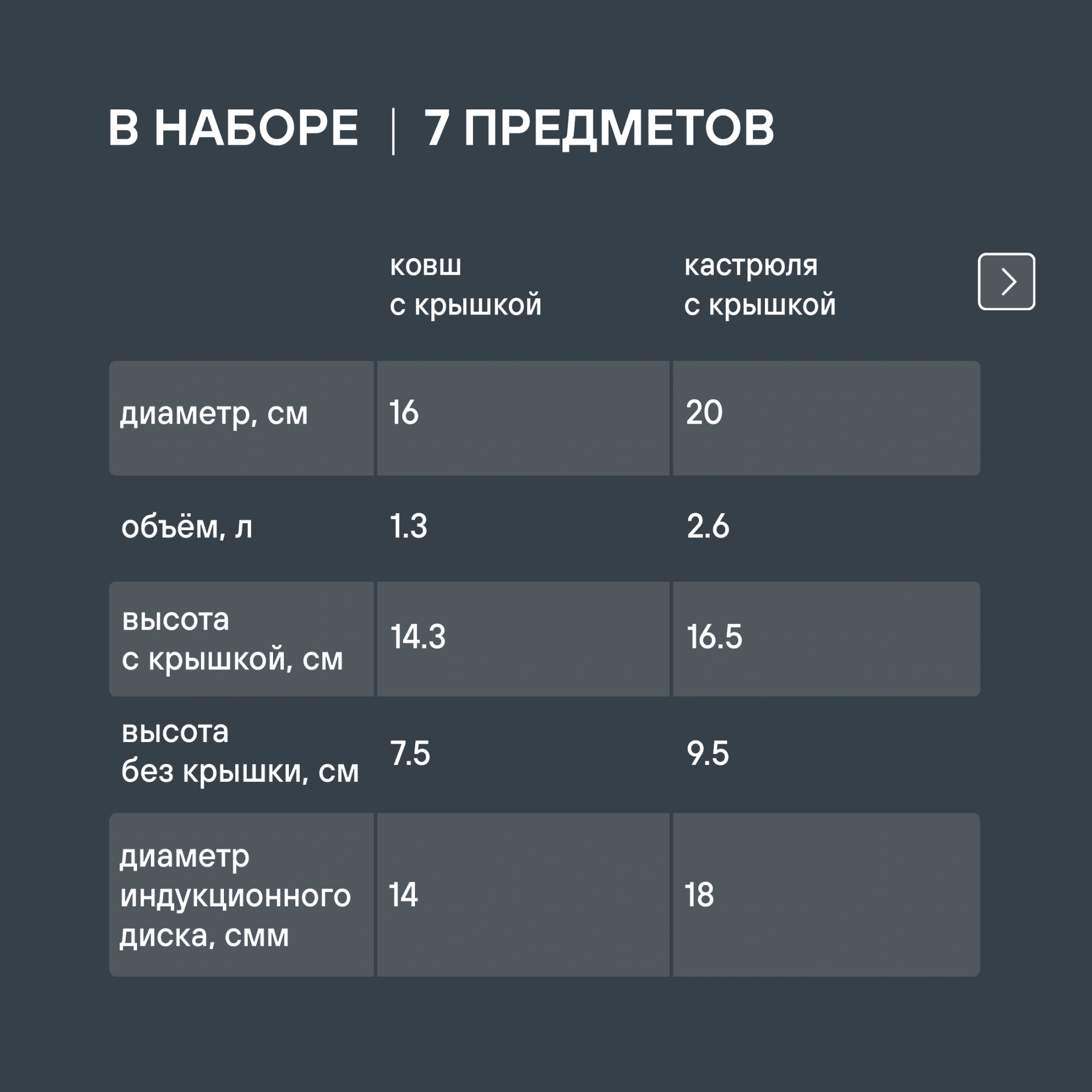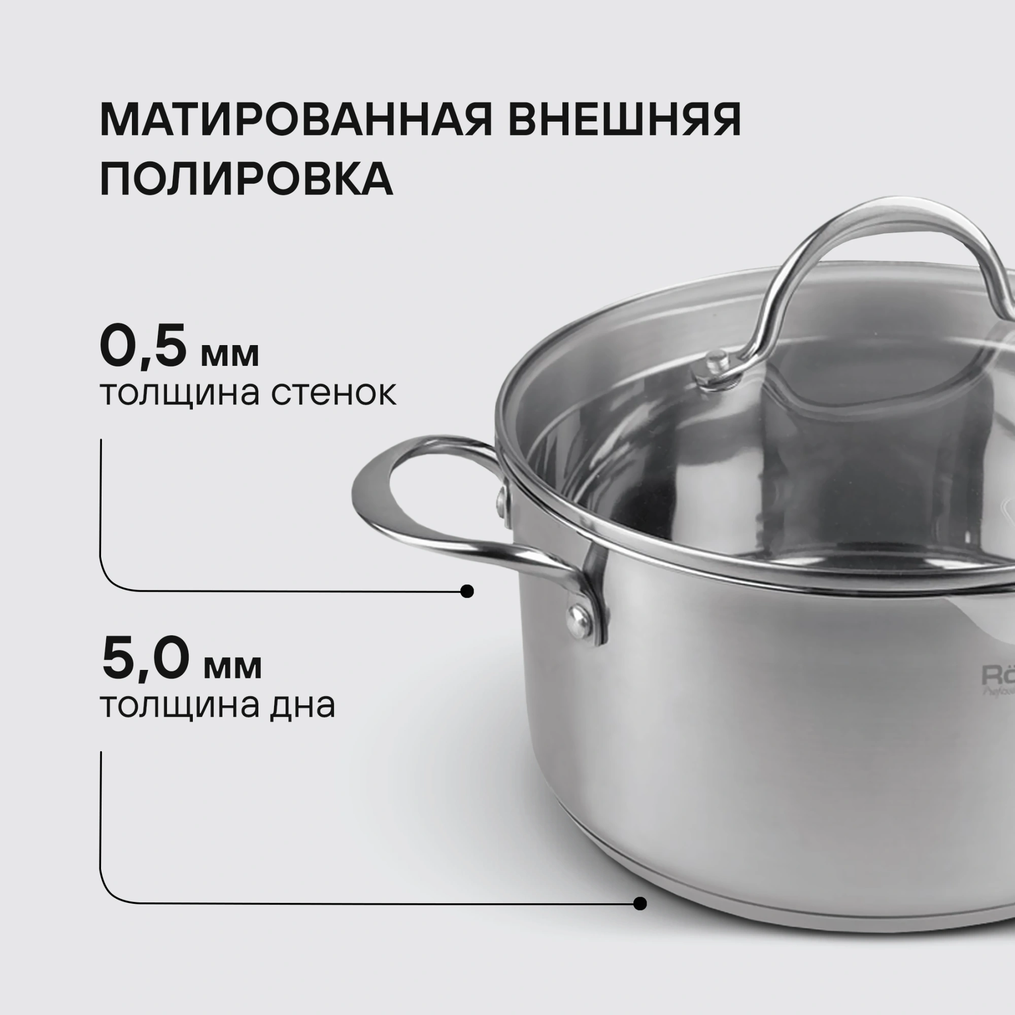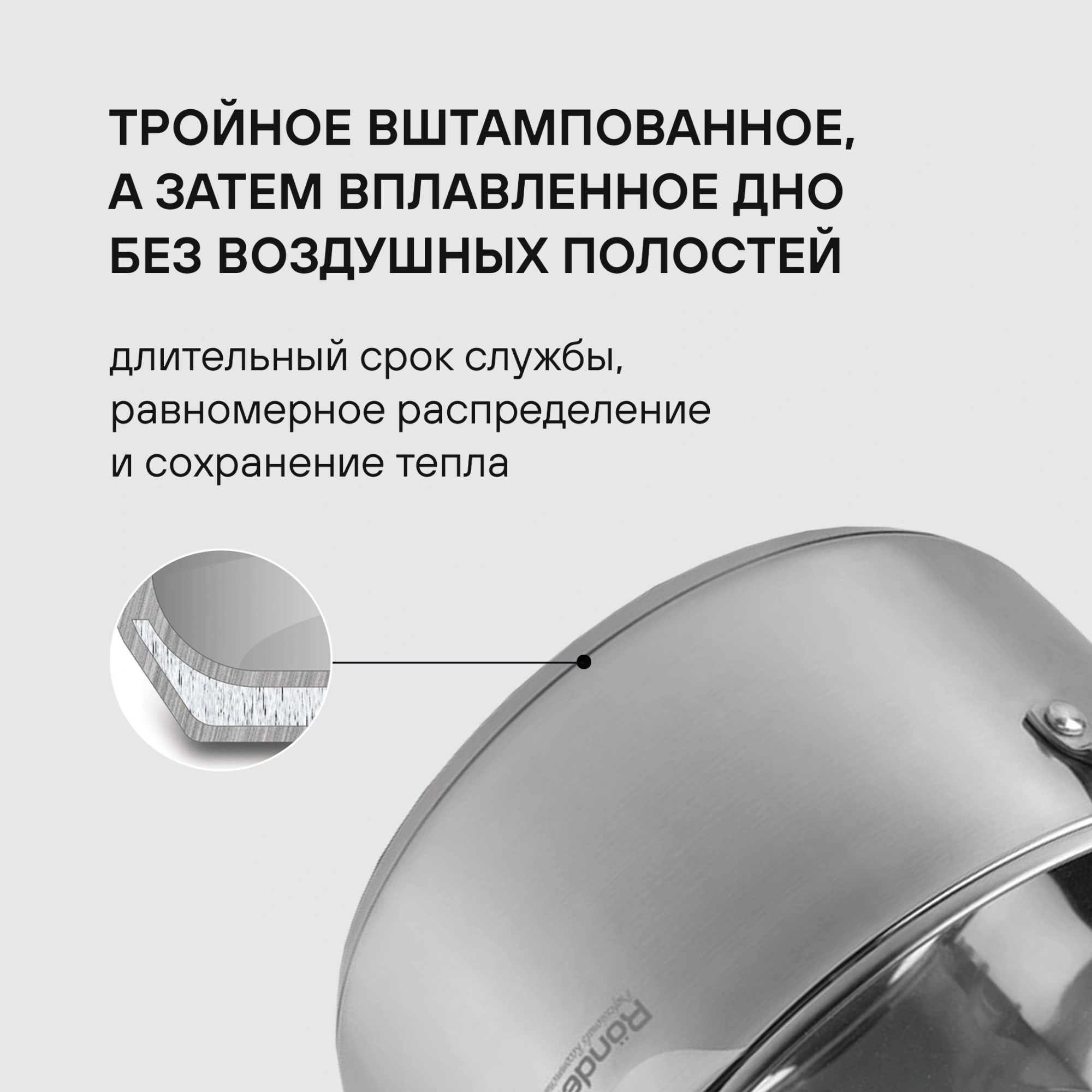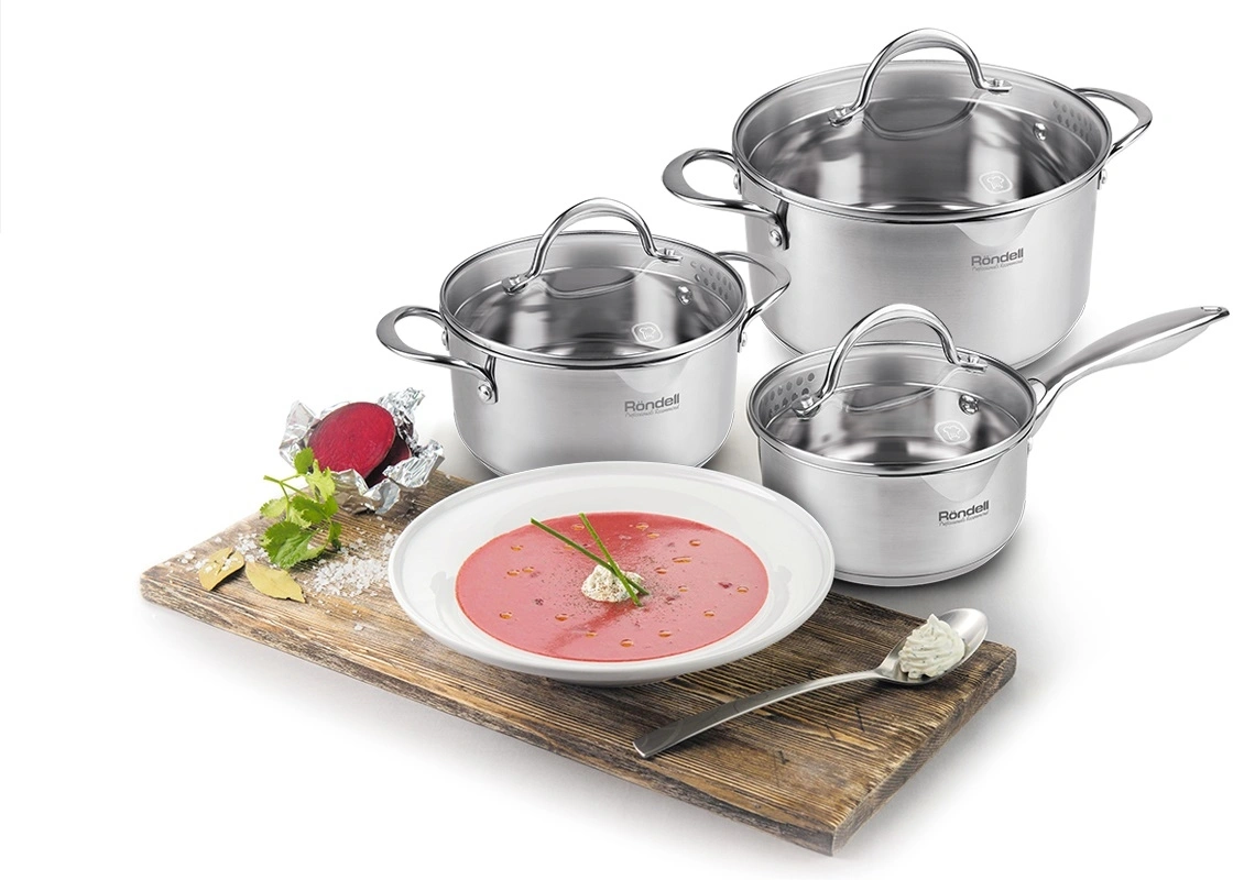 Ничего лишнего, никаких контрастов и резких линий! Строгий стальной цвет кастрюль и ковша, приглушенный благородной сатинированной полировкой, гармонично вписывается в интерьер кухни любого дизайна. Продукты прогреваются максимально равномерно, поэтому блюда получаются просто идеальными.