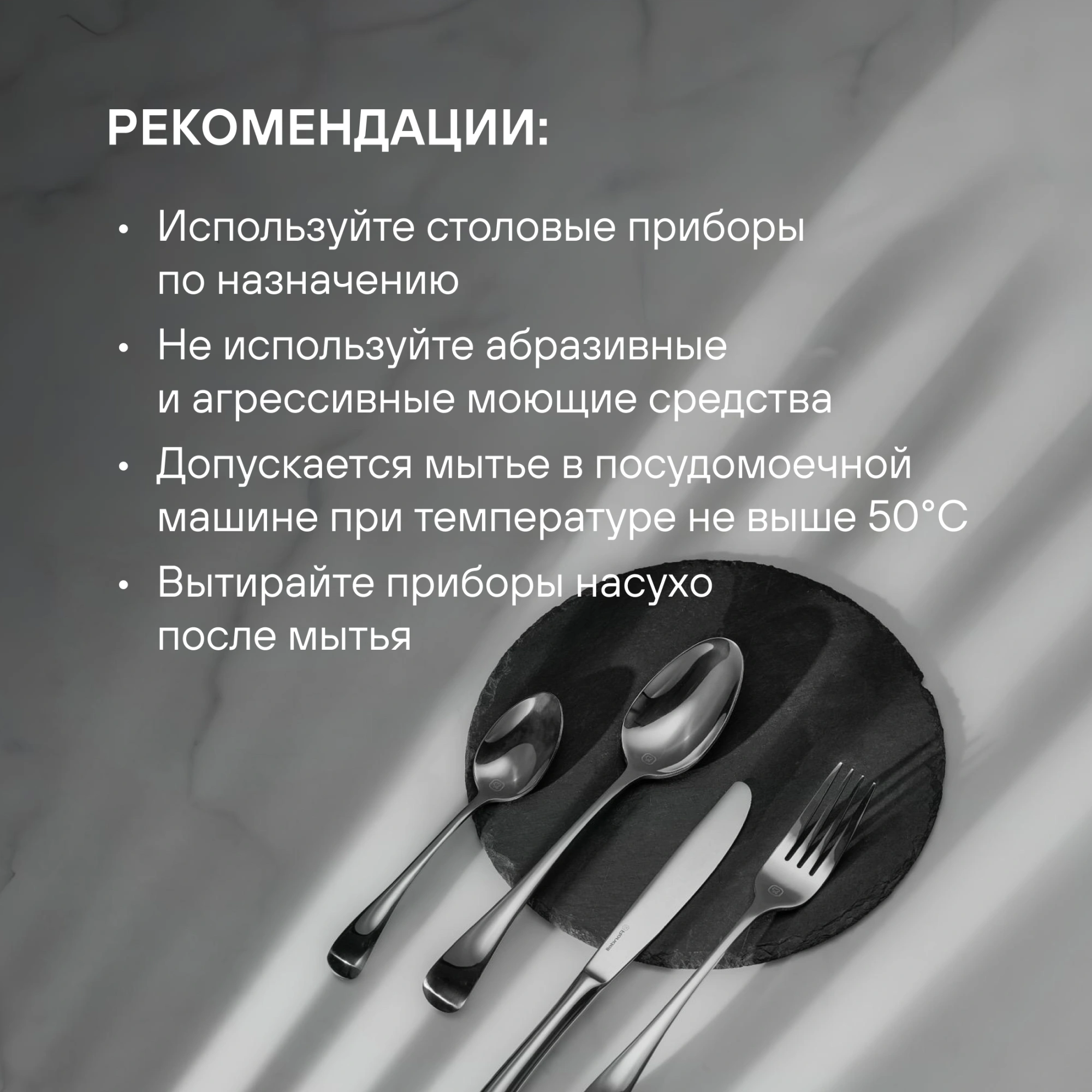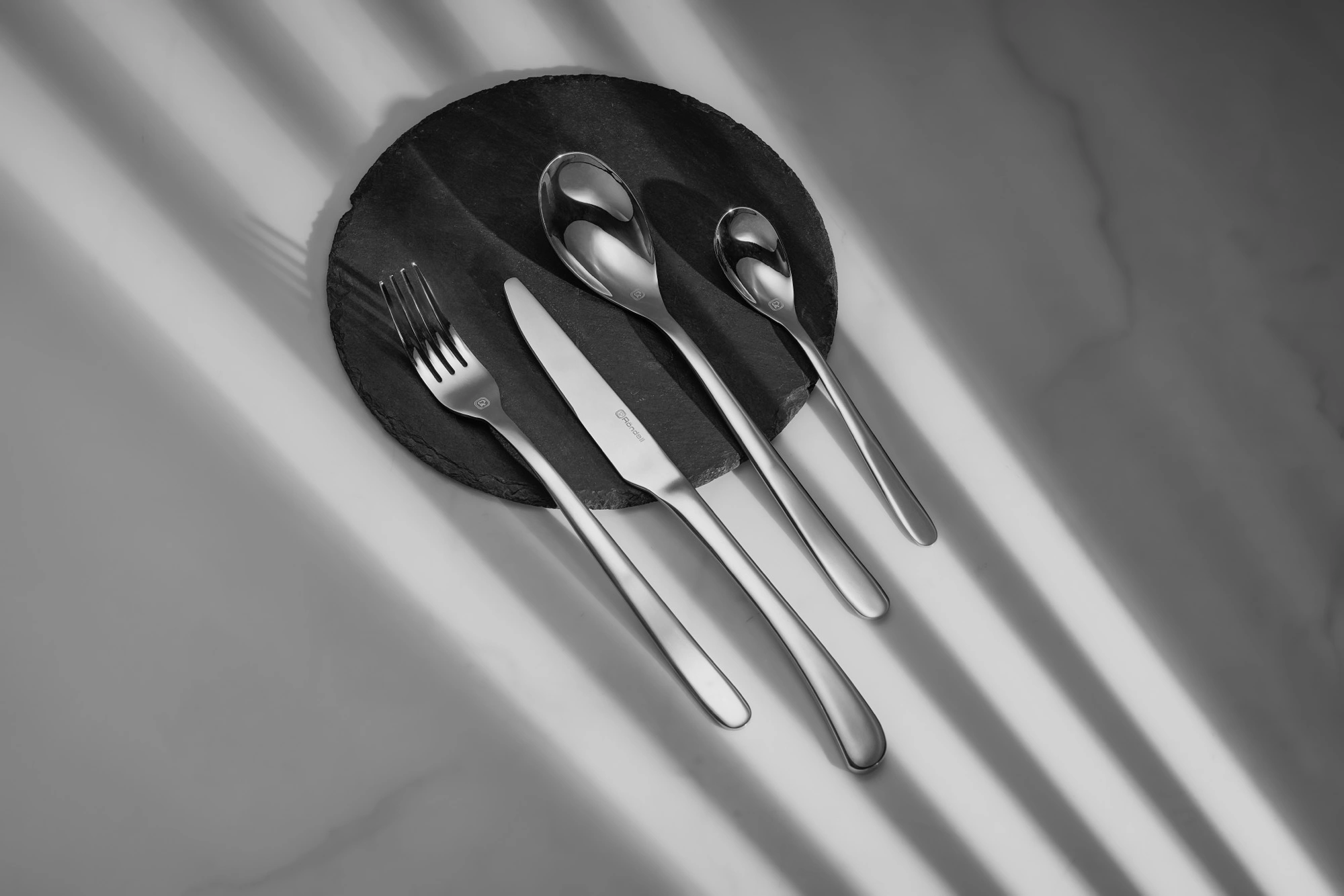 Все предметы столового набора коллекция Aurora изготовлены из высококачественной нержавеющей стали, которая будет служить вам верой и правдой на протяжении многих лет. Благодаря глянцевой полировке, эти приборы превосходно выглядят и приятно ложатся в руку, плавные линии создают ощущение гармонии.