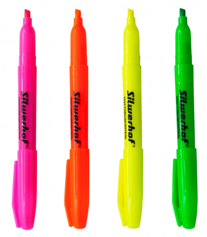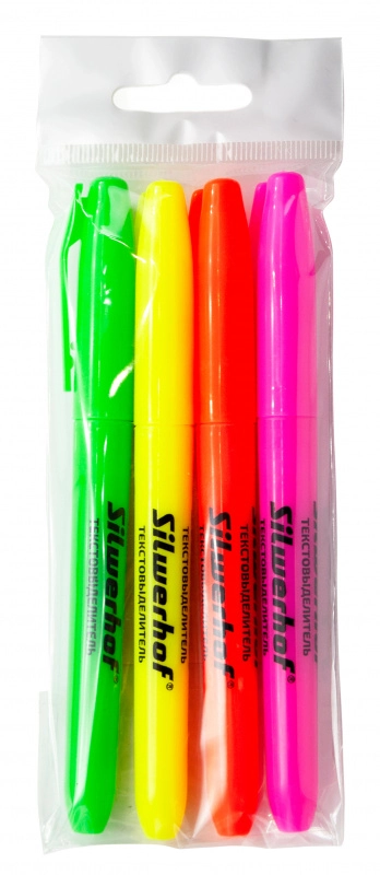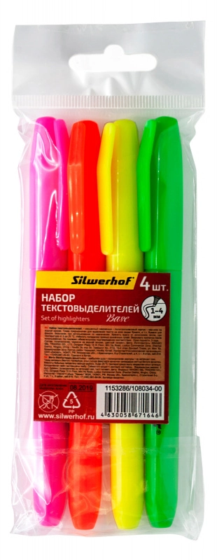 Набор текстовыделителей Silwerhof Base 108034-00 1-4мм 4цв. пакет с европодвесом (продается кратно 24 шт.)