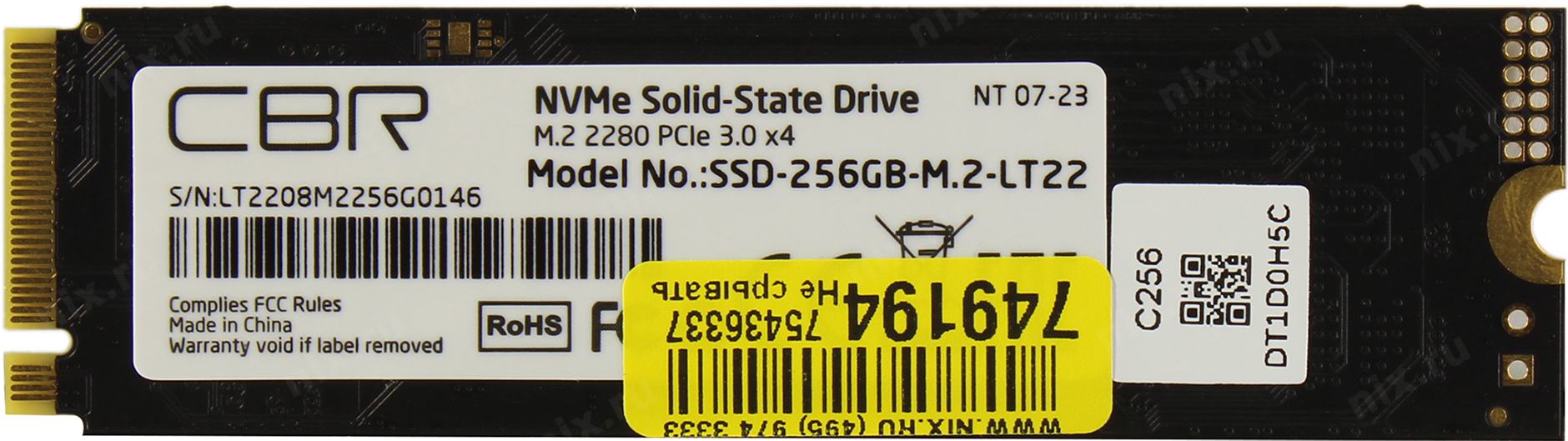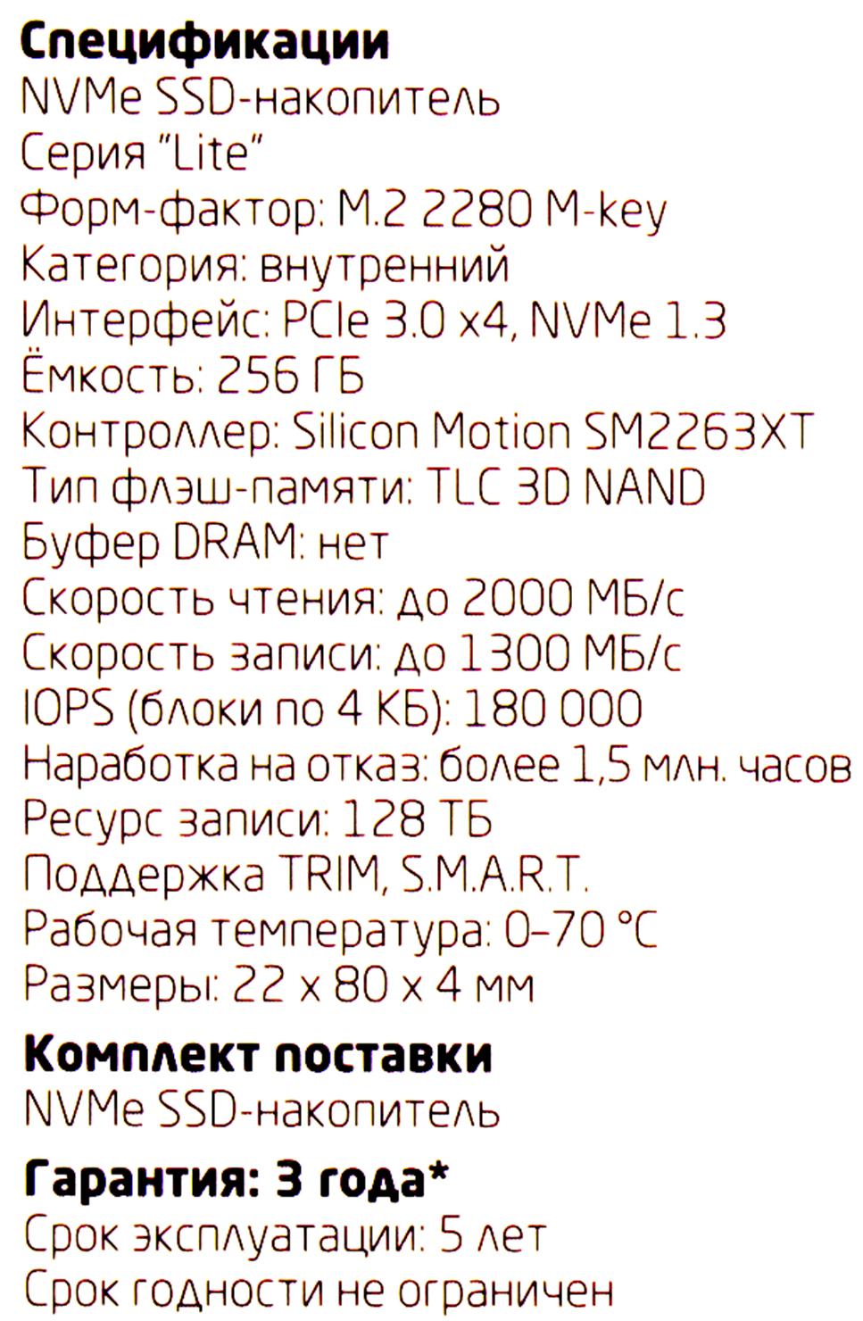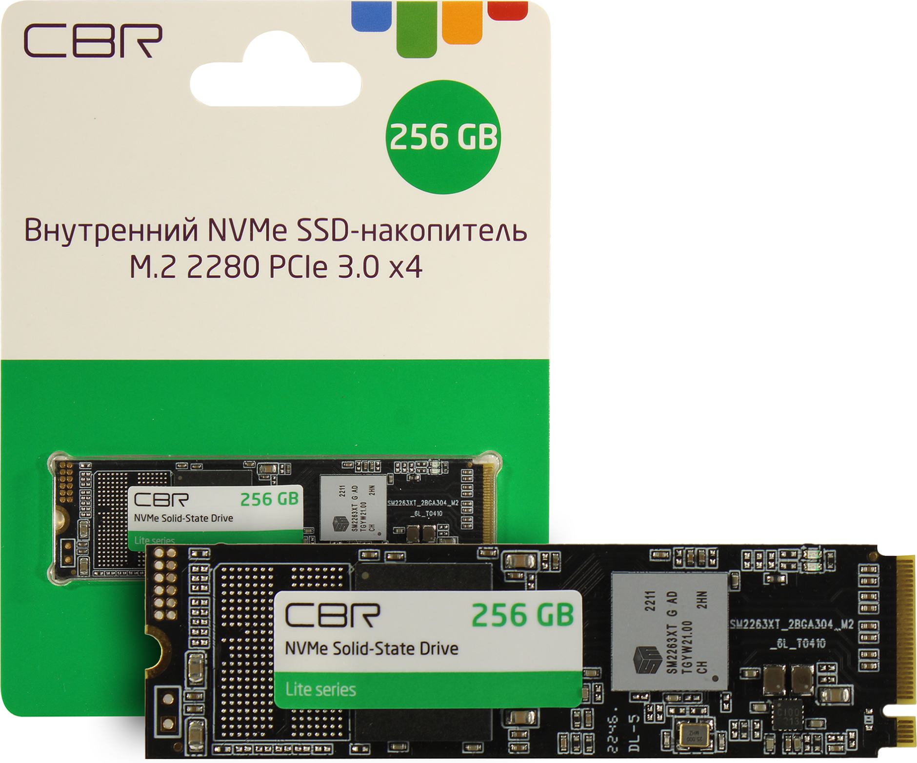 Накопитель CBR SSD-256GB-M.2-LT22, Внутренний SSD-накопитель, серия "Lite", 256 GB, M.2 2280, PCIe 3.0 x4, NVMe 1.3, SM2263XT, 3D TLC NAND, R/W speed up to 2000/1300 MB/s, TBW (TB) 128