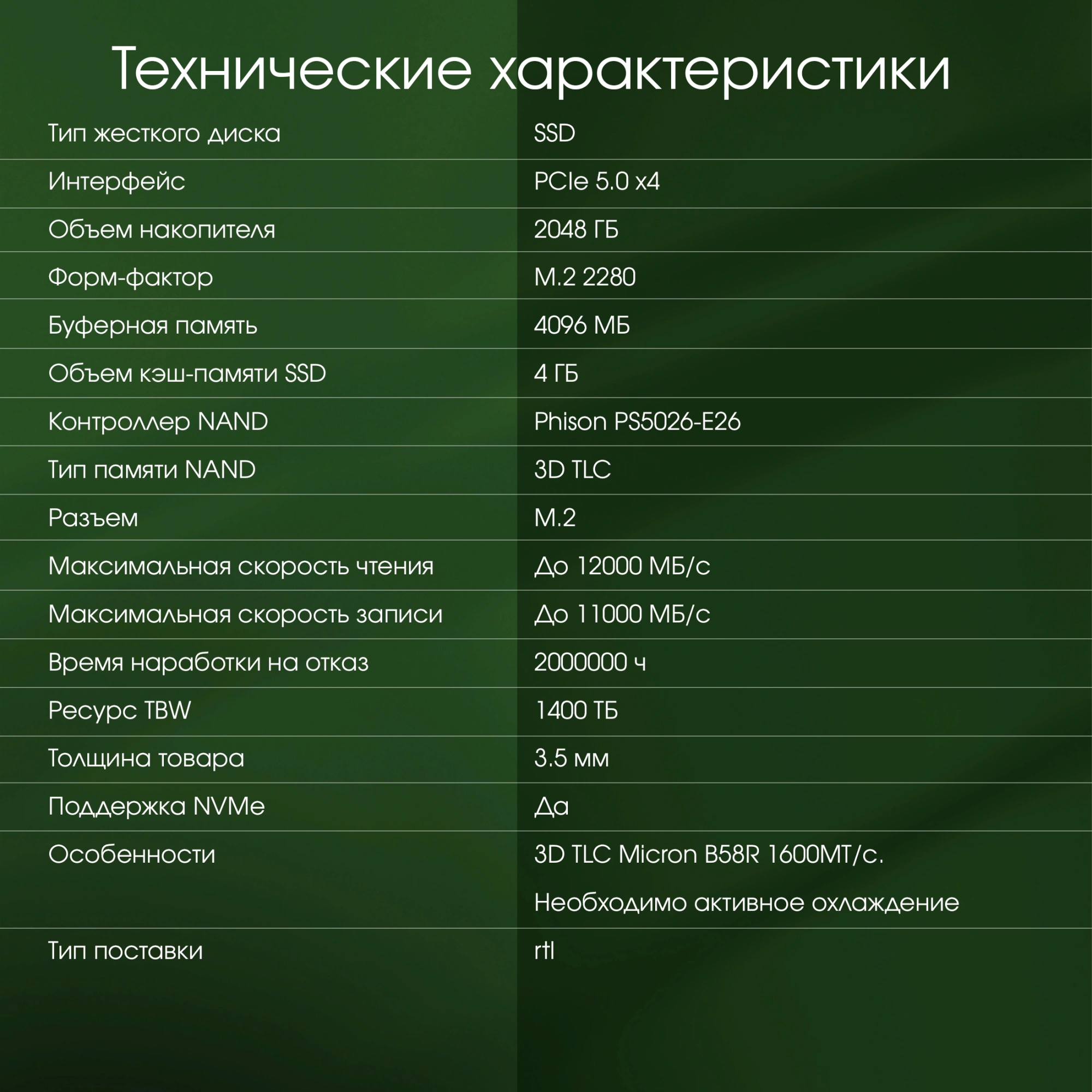 Накопитель SSD Digma Pro PCIe 5.0 x4 2000GB DGPST5002TP6T4 Top P6 M.2 2280