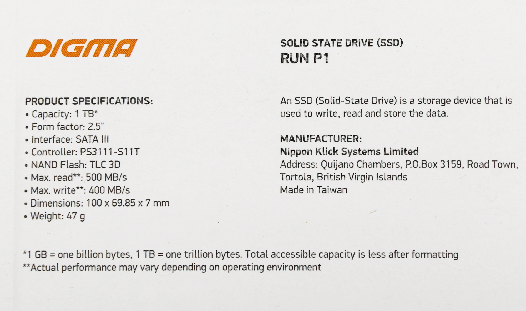 Накопитель SSD Digma SATA-III 1TB DGSR2001TP13T Run P1 2.5" | НИКС Екатеринбург