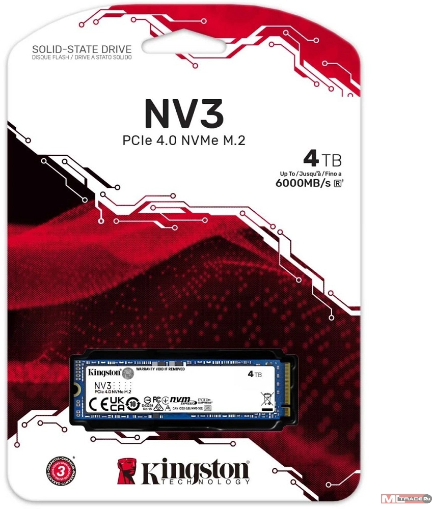 Накопитель SSD Kingston PCIe 4.0 x4 4TB SNV3S/ 4000G NV3 M.2 2280