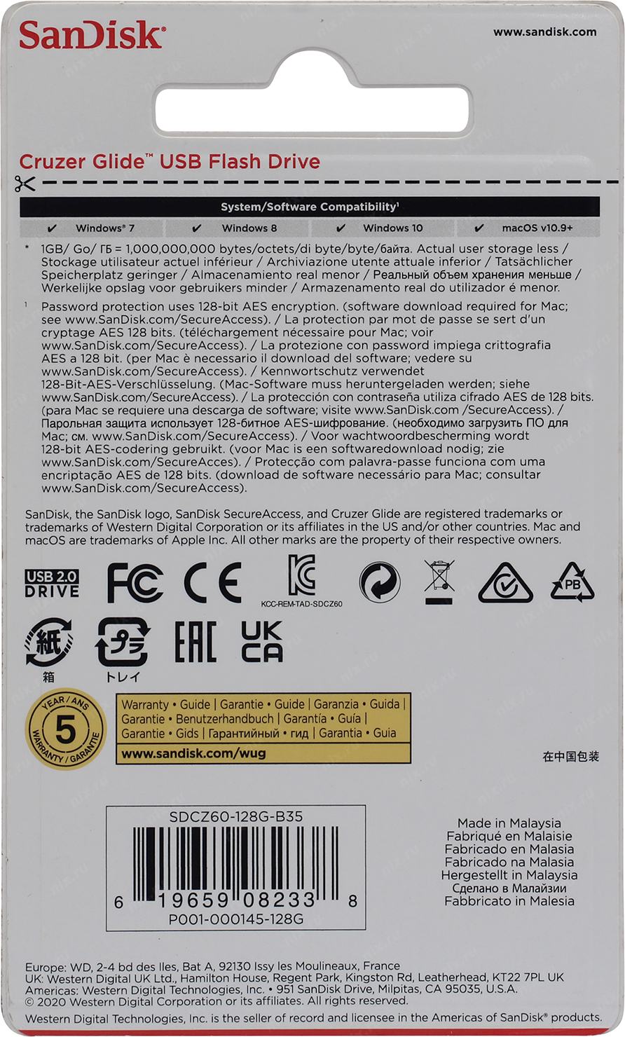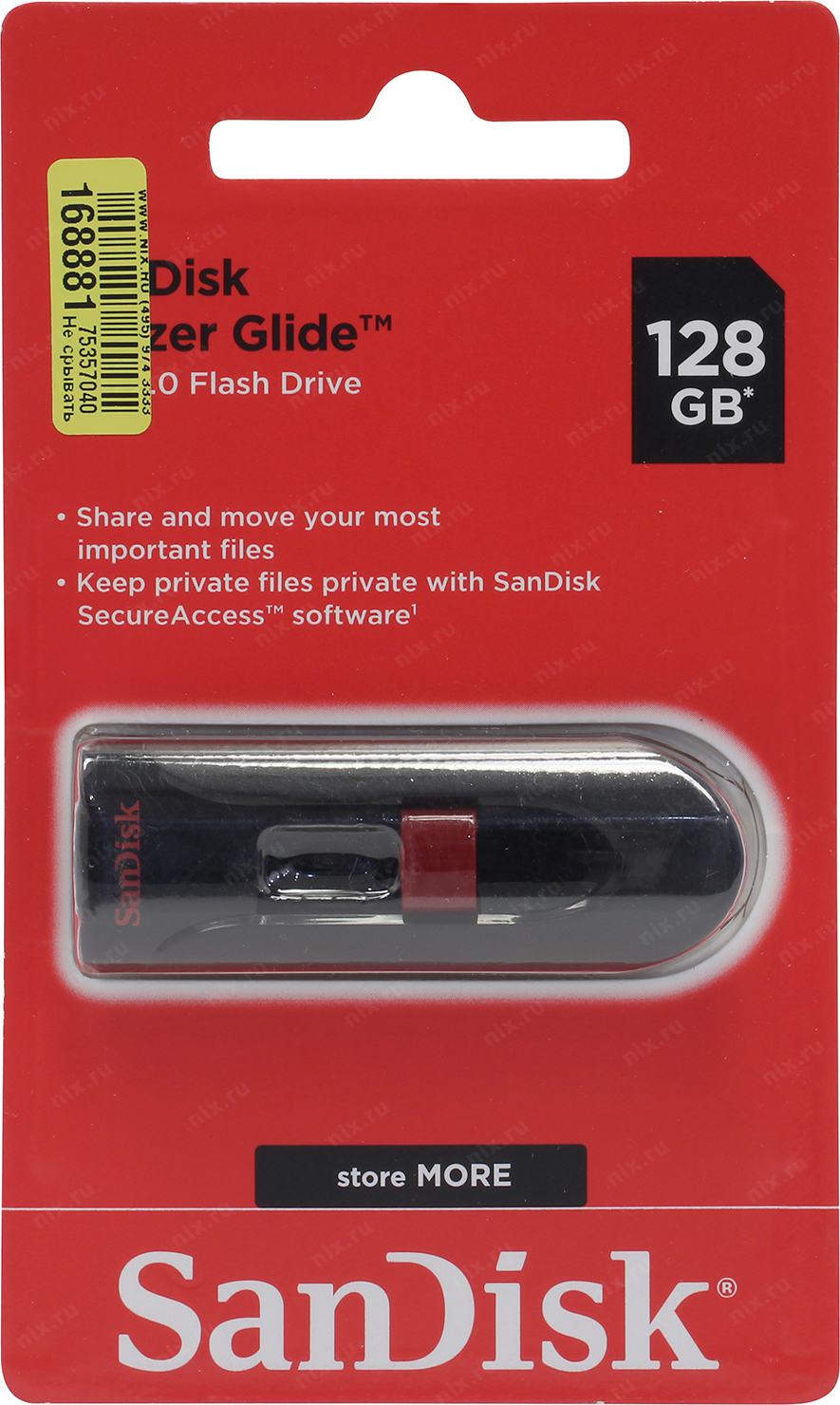 Накопитель SanDisk Cruzer Glide <SDCZ60-128G-B35> USB2.0 Flash Drive 128Gb (RTL)