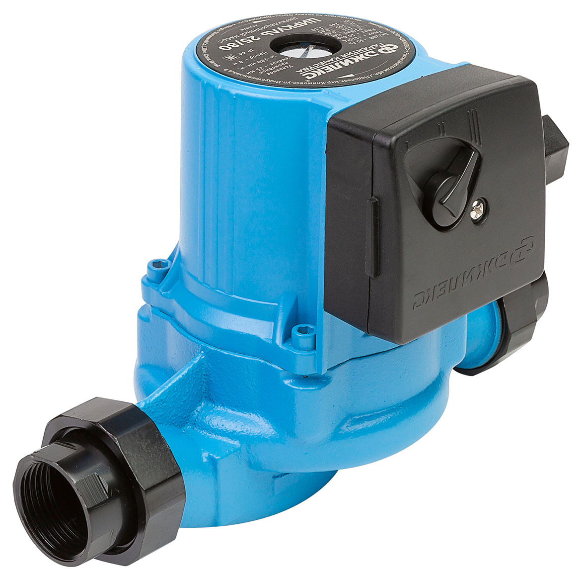 Оборудован переключателем скоростей,  позволяющим подобрать оптимальный режим работы и экономно расходовать электроэнергию. В комплектацию входят присоединительные гайки,  защищенные от коррозии. Оснащен клапаном для сброса воздуха. Установочный размер между присоединительными фланцами — 180 мм.