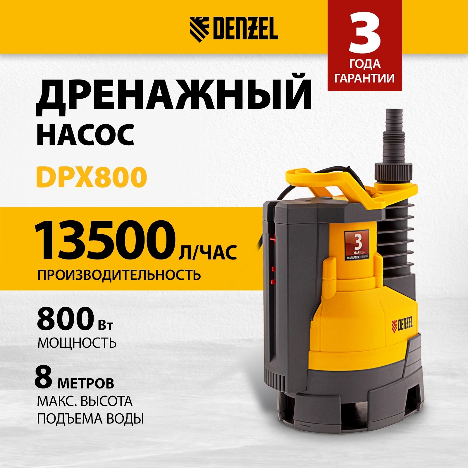 Насос дренажный Denzel DPХ800 800Вт 13500л/ час (97226)