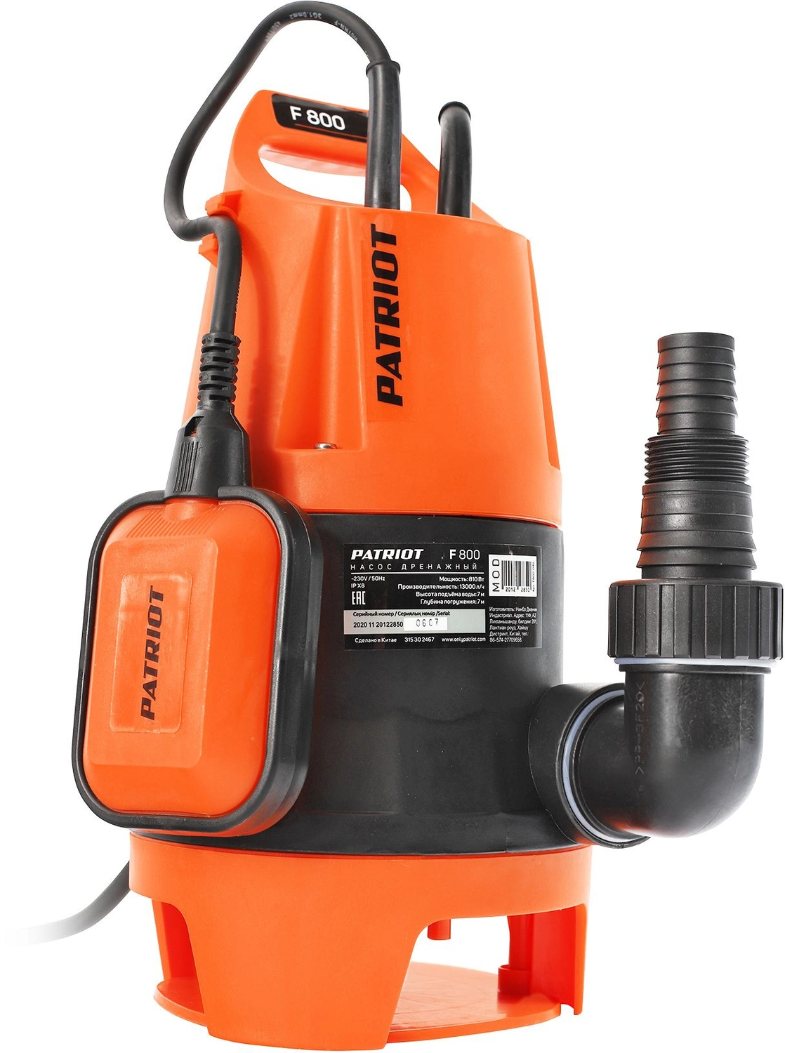Насос дренажный Patriot F 800 810Вт 13000л/ час центробежный (315302467)