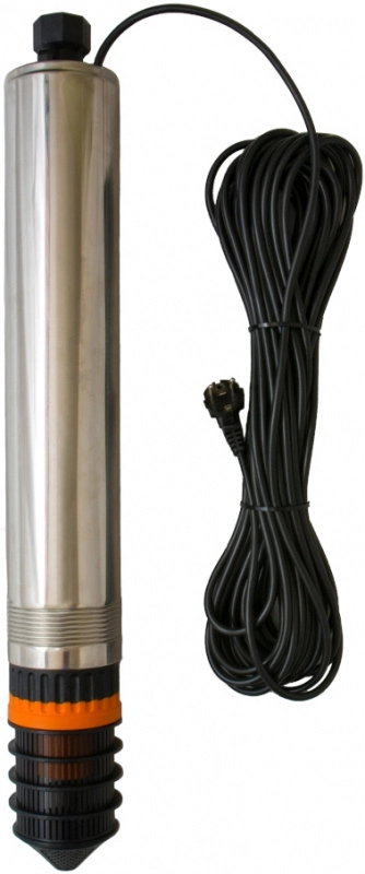 Напор 35 м. 3 рабочих колеса. Корпус насоса из нержавеющей стали. Электрокабель длиной 20 метров. Стандартная присоединительная резьба G1" . Выносной блок управления.
