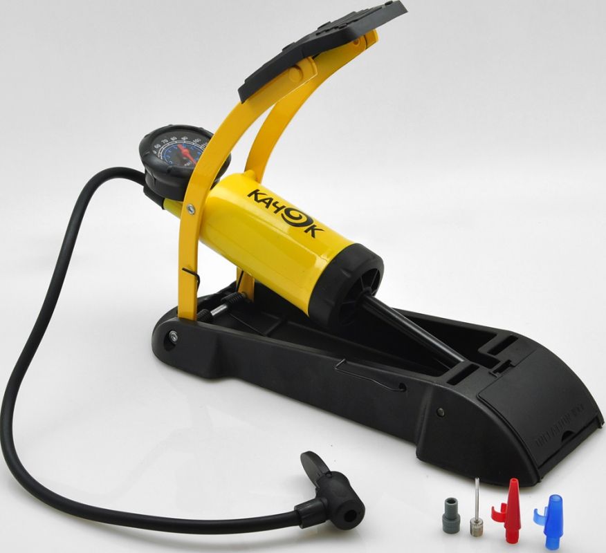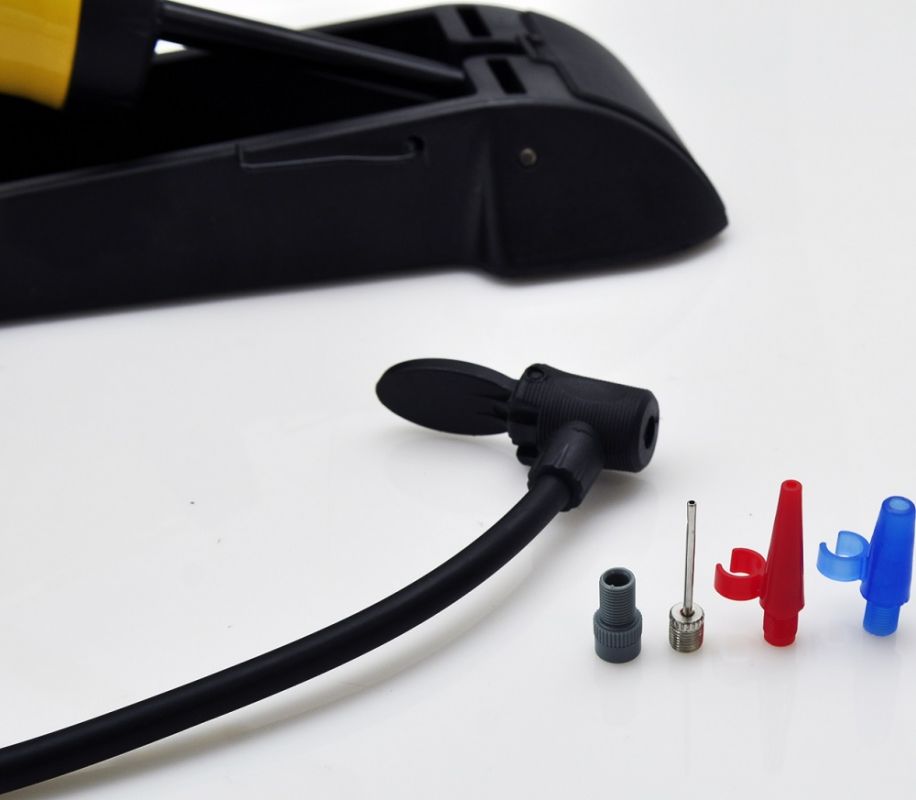 Ножной насос с облегченным рабочим цилиндром и увеличенным ходом поршня идеально подходят для подкачки шин легковых автомобилей, велосипедов, мотоциклов, квадроциклов и различных надувных изделий. Устойчивая платформа из высокопрочного пластика, точный манометр и набор из четырех переходников.