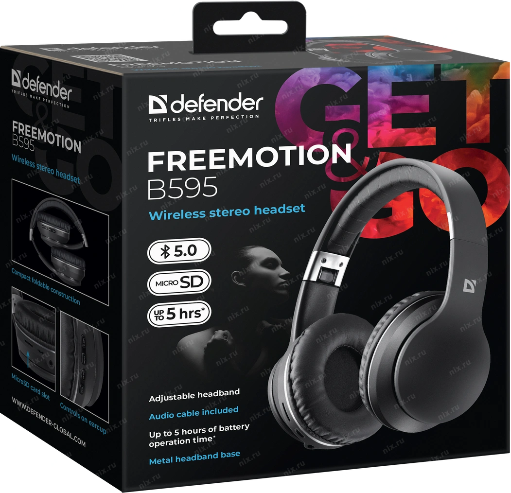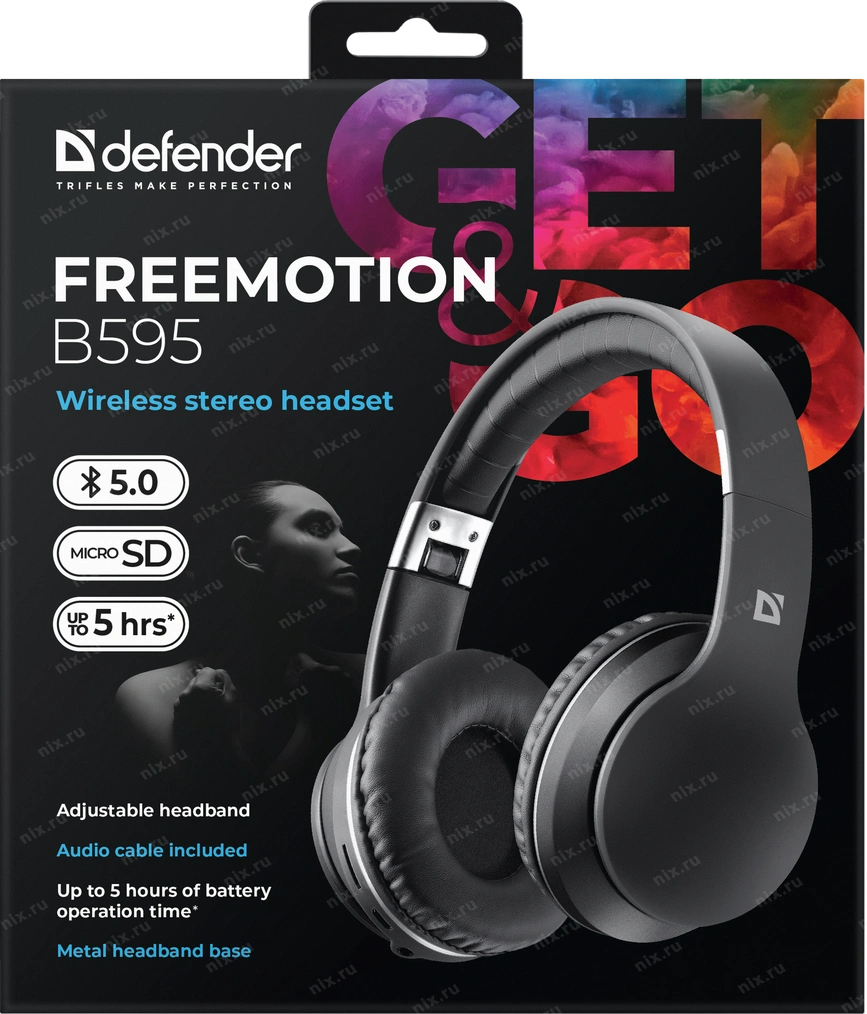Наушники Defender Беспроводная гарнитура FreeMotion B595 черный, Bluetooth (63595)
