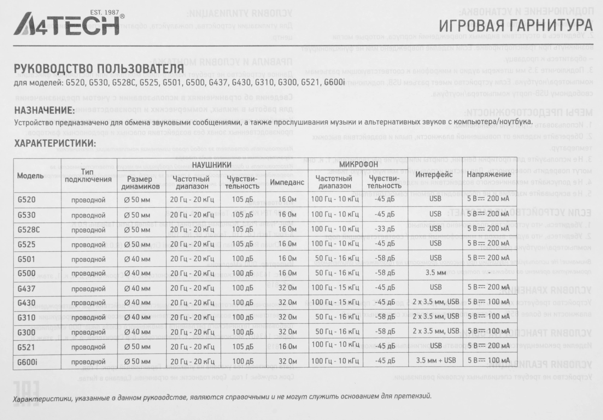 Характеристики