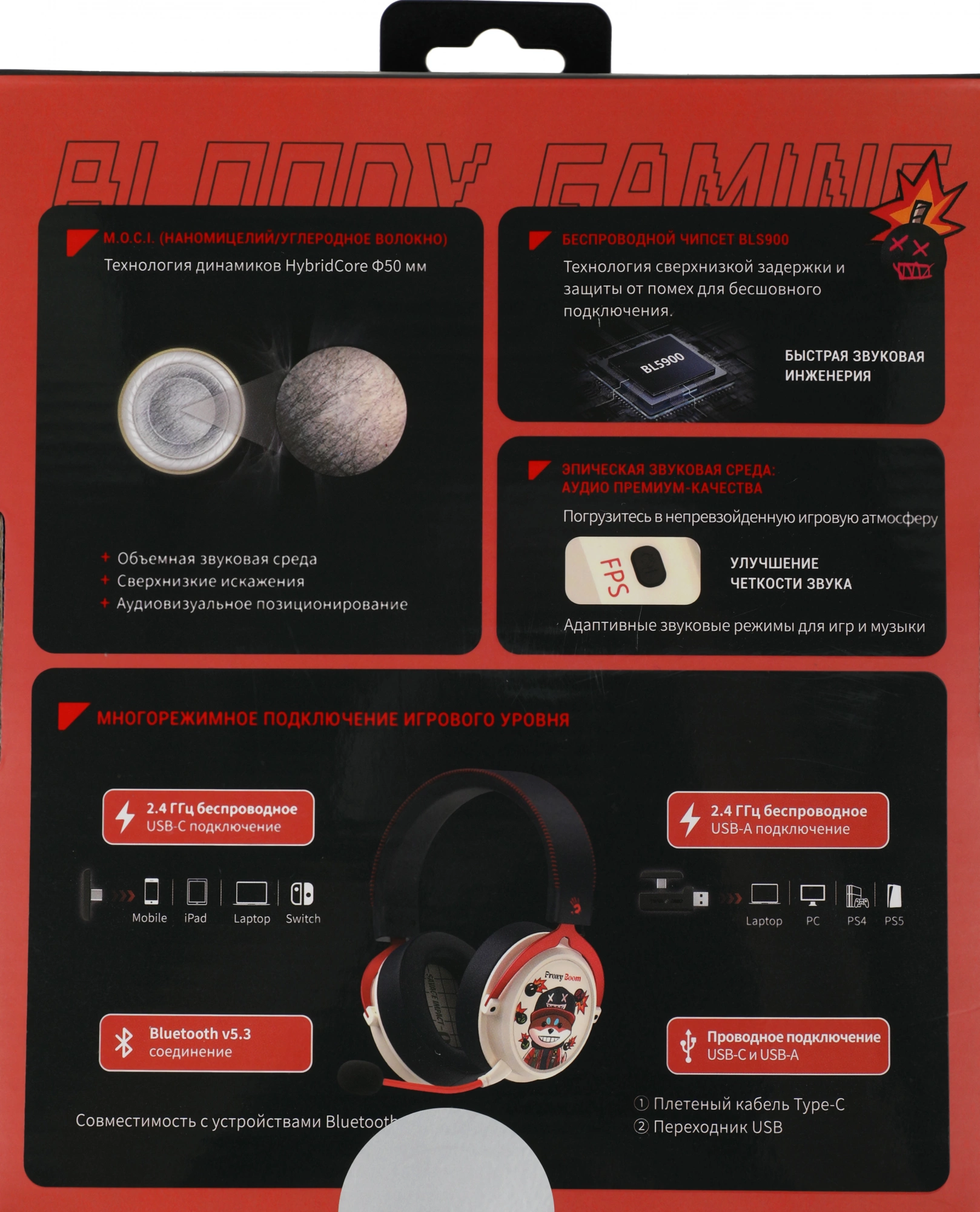 Наушники с микрофоном A4Tech Bloody MR595 Proxy Boom бежевый/ черный мониторные BT/ Radio оголовье (MR595)