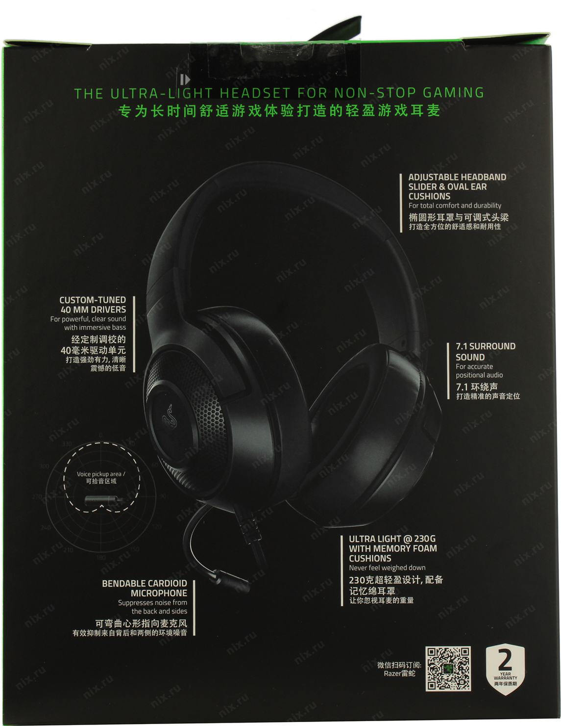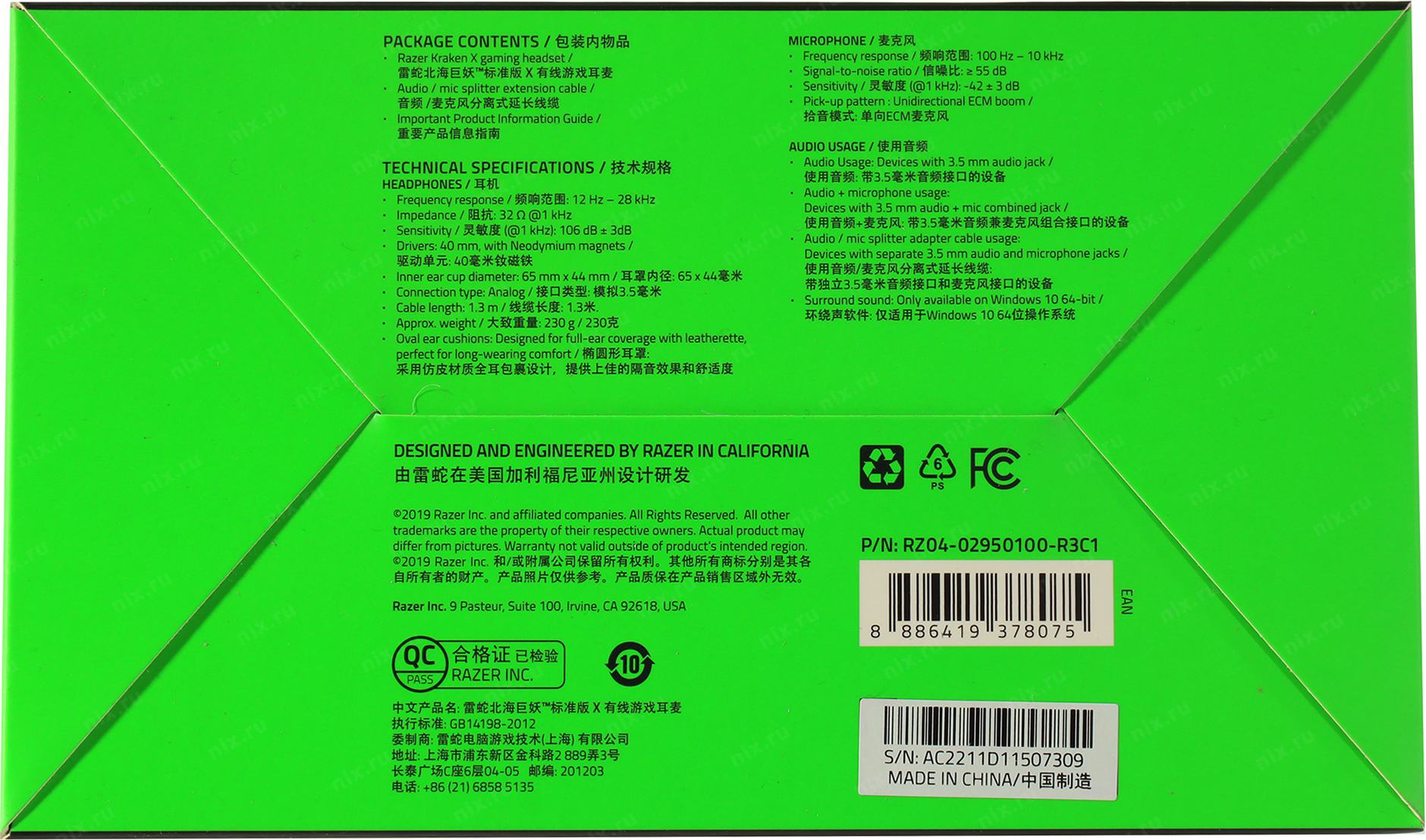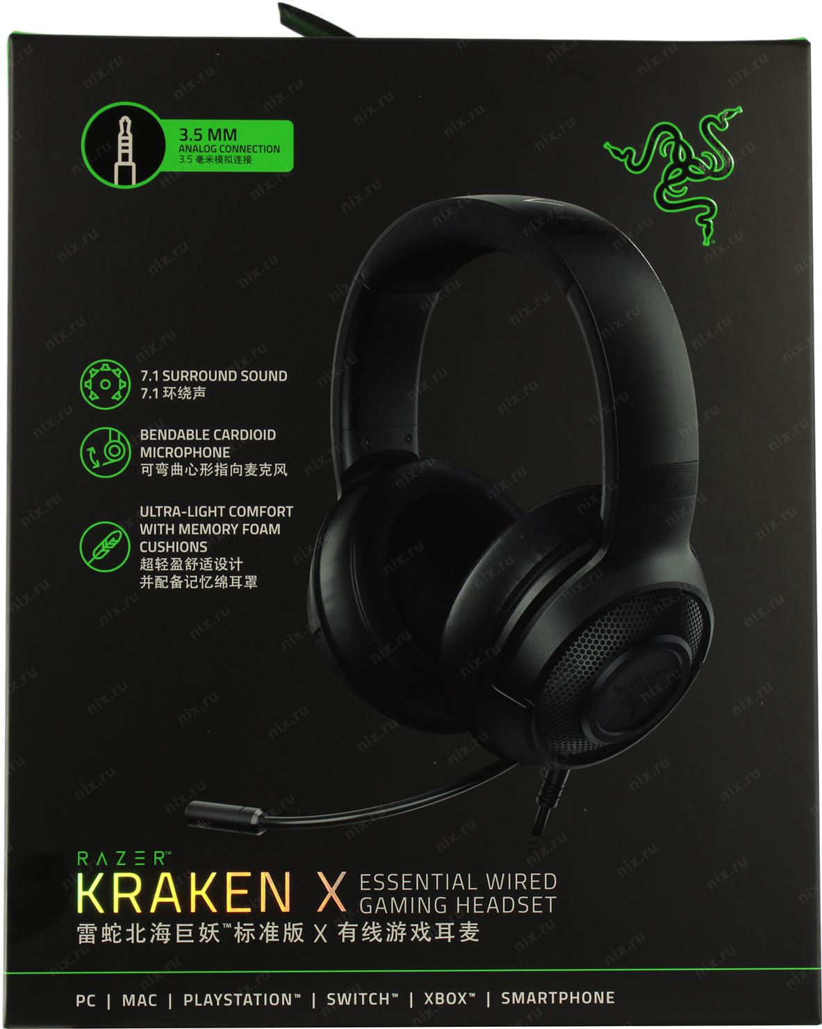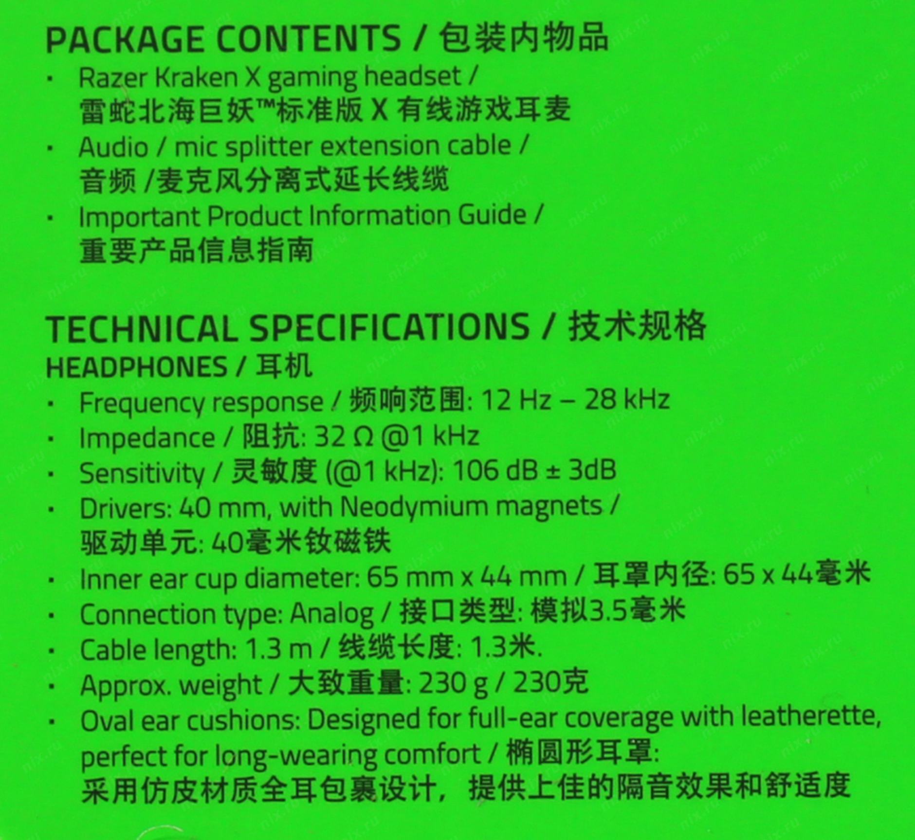 Наушники с микрофоном Razer Kraken X < RZ04-02950100-R3C1> (шнур 1.3м + 2м)