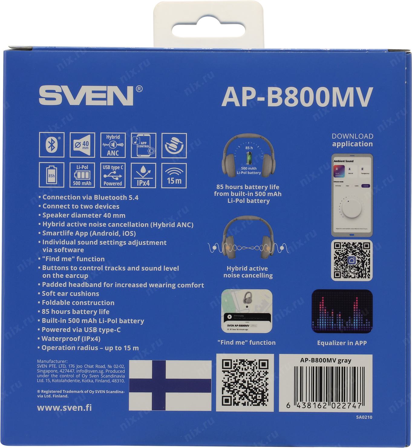 Наушники с микрофоном SVEN AP-B800MV < Gray> (Bluetooth 5.4)
