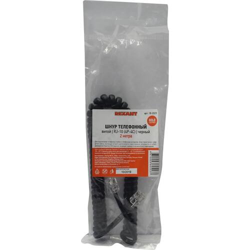 Патч-корды (сетевые, телефонные) Rexant (18-2023) Шнур для телефонной трубки, витой RJ-10 (4P-4C), 2м, черный