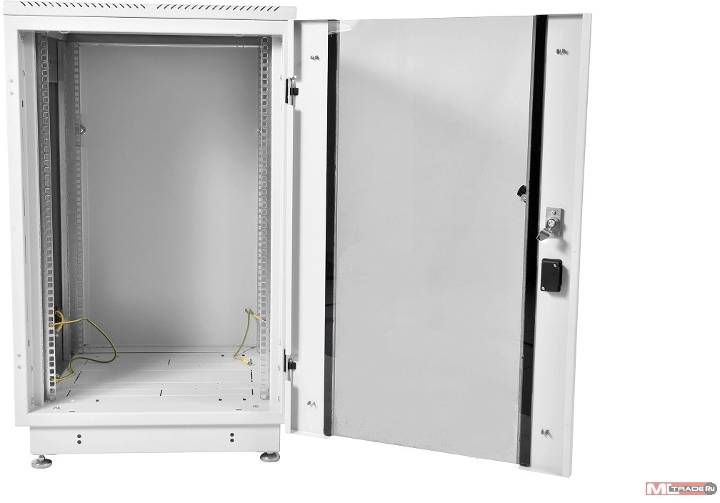 Шкаф коммутационный ЦМО (ШТК-М-18.6.6-1ААА) напольный 18U 600x600мм пер.дв.стекл задн.дв.стал.лист 2 бок.пан. направл.под закл.гайки 270кг серый 455мм 48.6кг 180град. 960мм