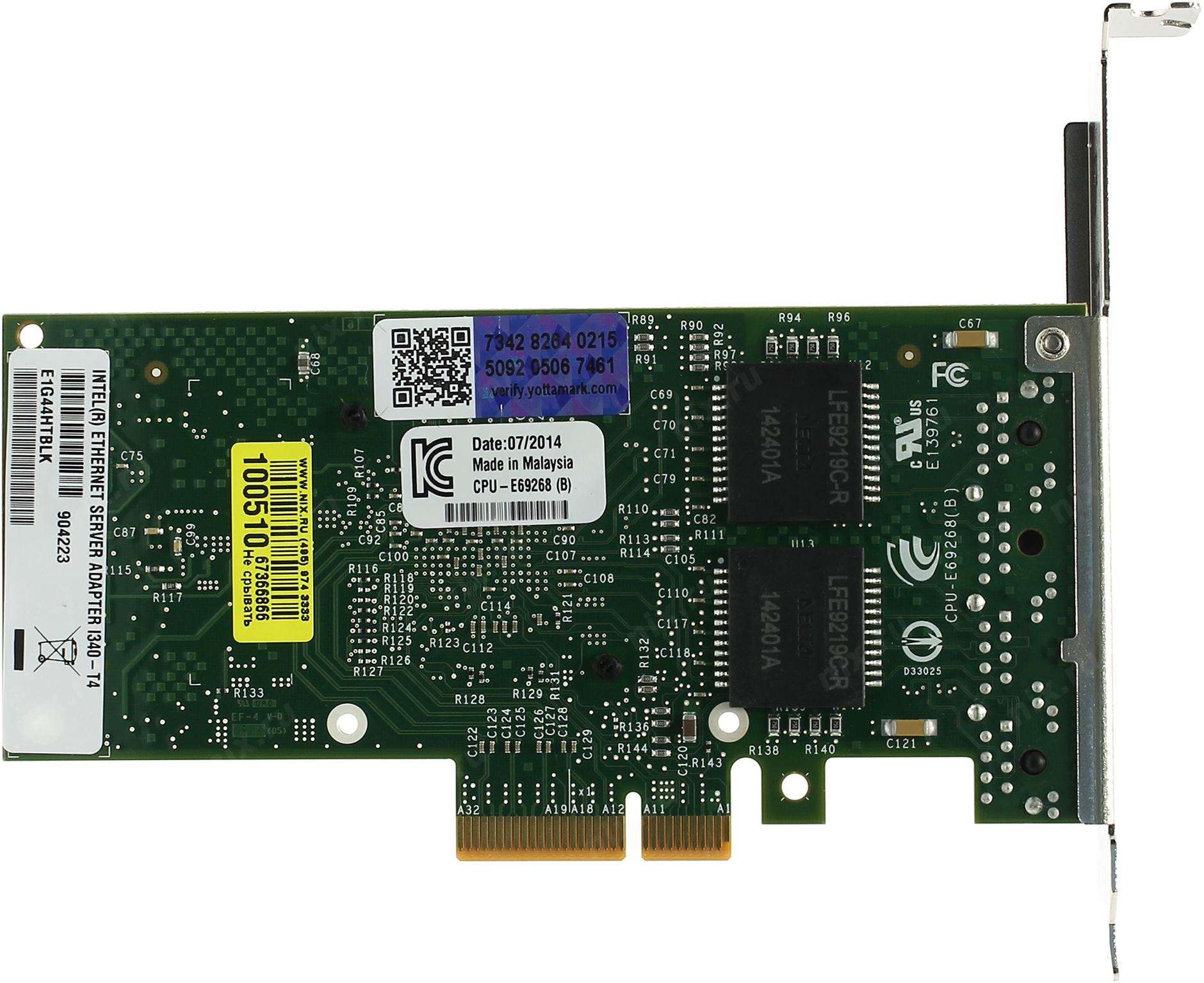 Сетевая карта Intel <E1G44HTBLK/E1G44HTG1P20> Gigabit Adapter Quad Port (OEM) PCI-E x4 1000Mbps