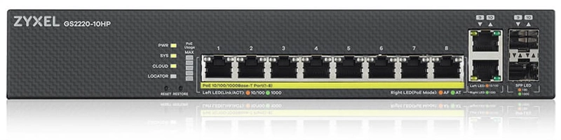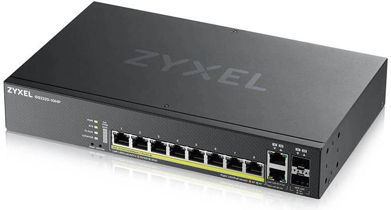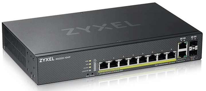 Коммутатор L2 PoE+ Zyxel NebulaFlex Pro GS2220-10HP, rack 19", 8xGE PoE+, 2xCombo (SFP/RJ-45), бюджет PoE 180 Вт <GS2220-10HP-EU0101F>