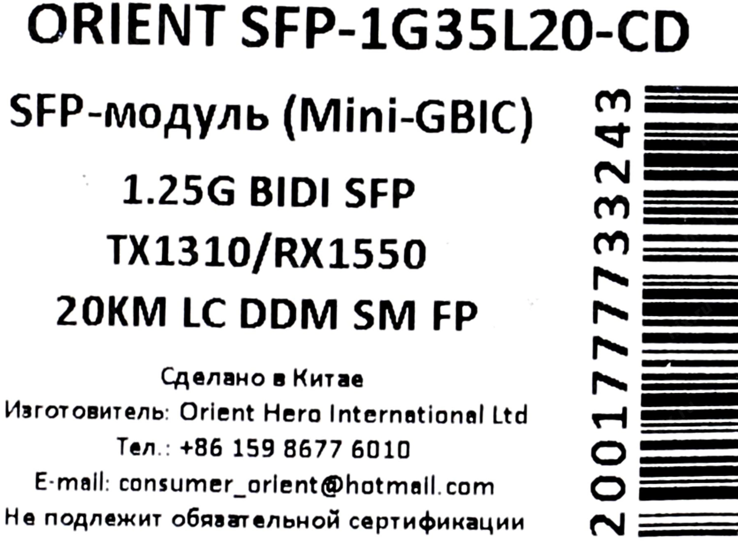 Контроллер ORIENT SFP-1G35L20-CD SFP-модуль (Mini-GBIC BIDI)