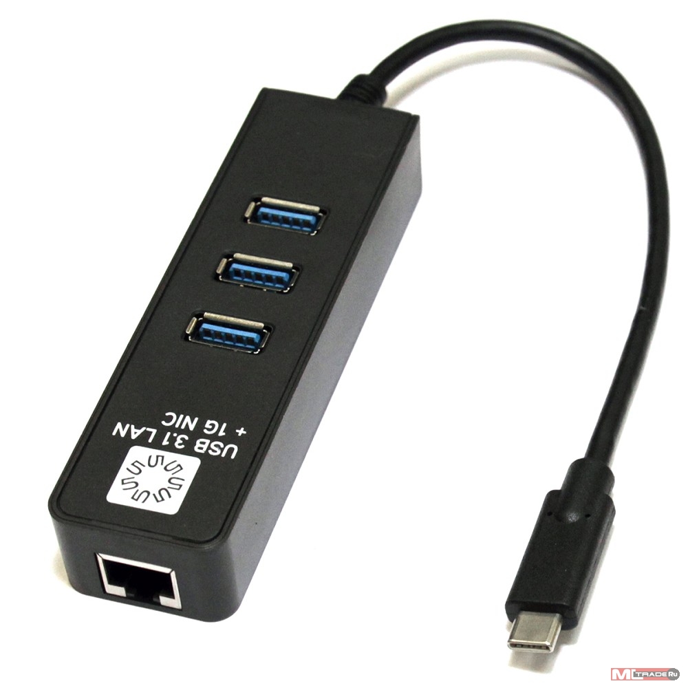 Гигабитная сетевая карта USB 3.0 type C с 3-х портовым USB 3.0 разветвителем