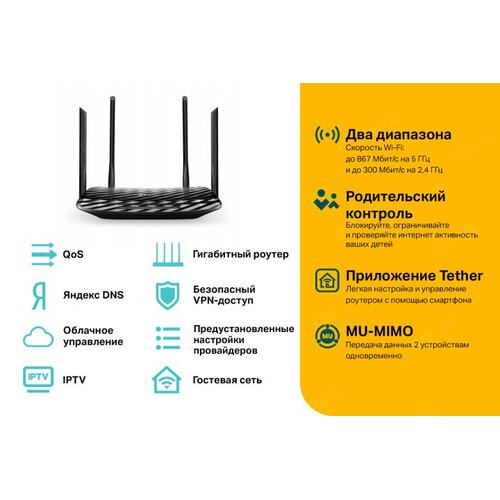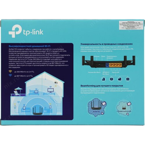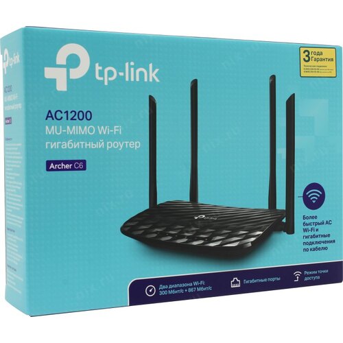 Роутер беспроводной TP-Link ARCHER C6 AC1200 10/100/1000BASE-TX черный
