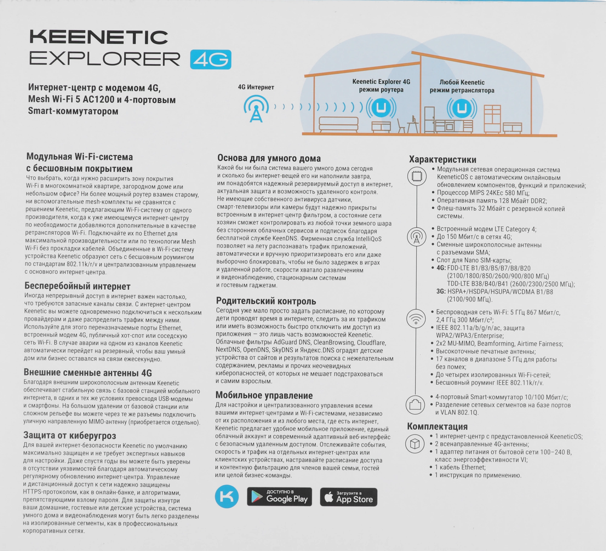 Сетевое оборудование Keenetic Explorer 4G (KN-4910) Интернет-центр с модемом 4G, Mesh Wi-Fi 5 AC1200 и 4-портовым Smart-коммутатором | НИКС Екатеринбург
