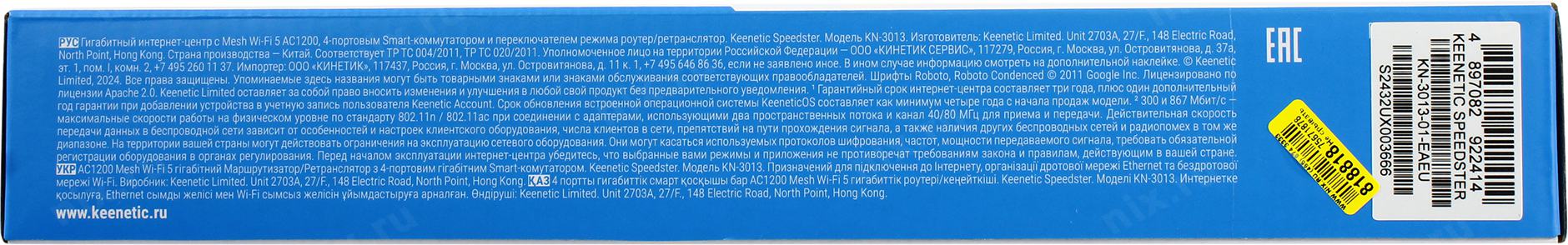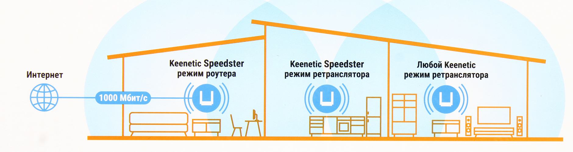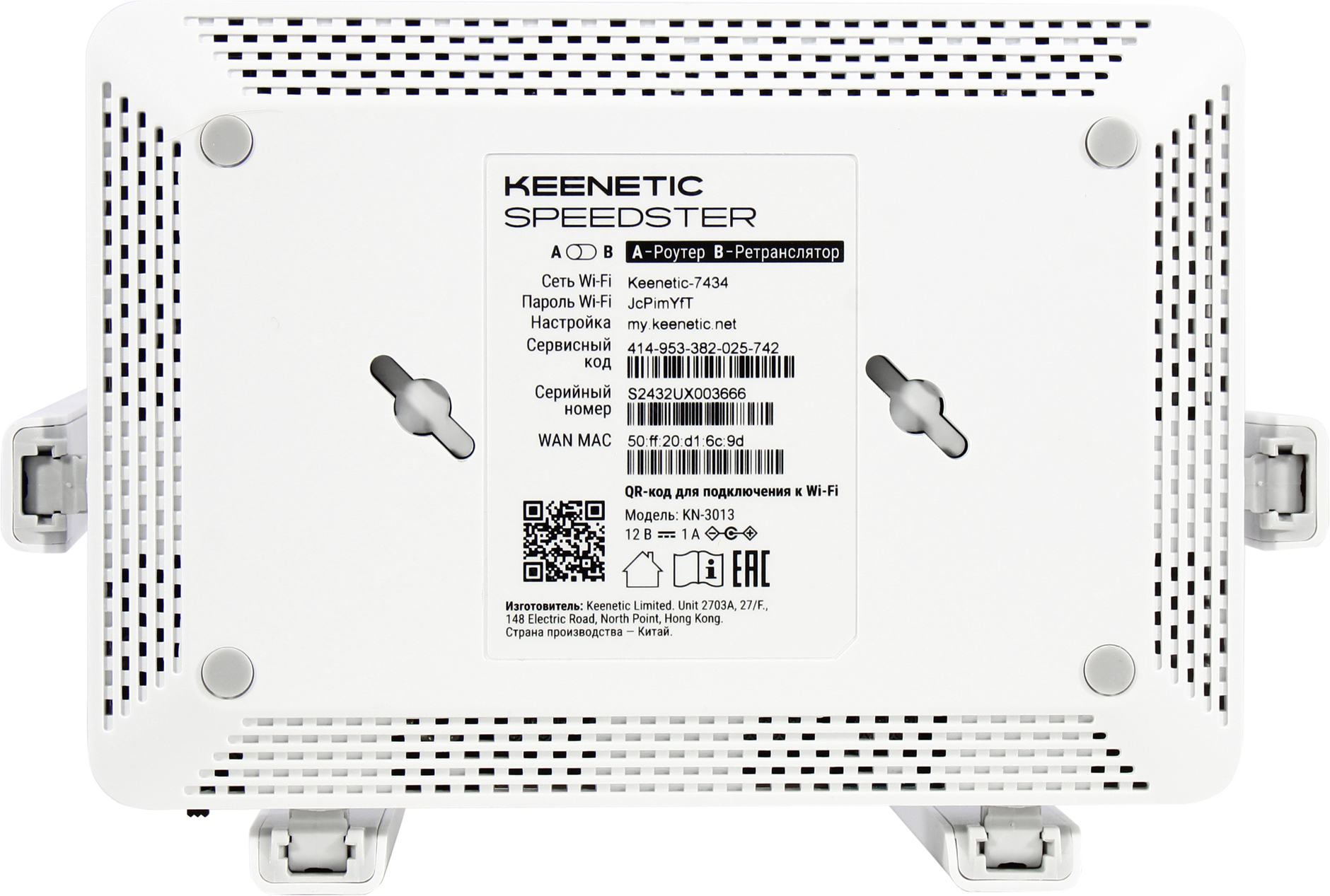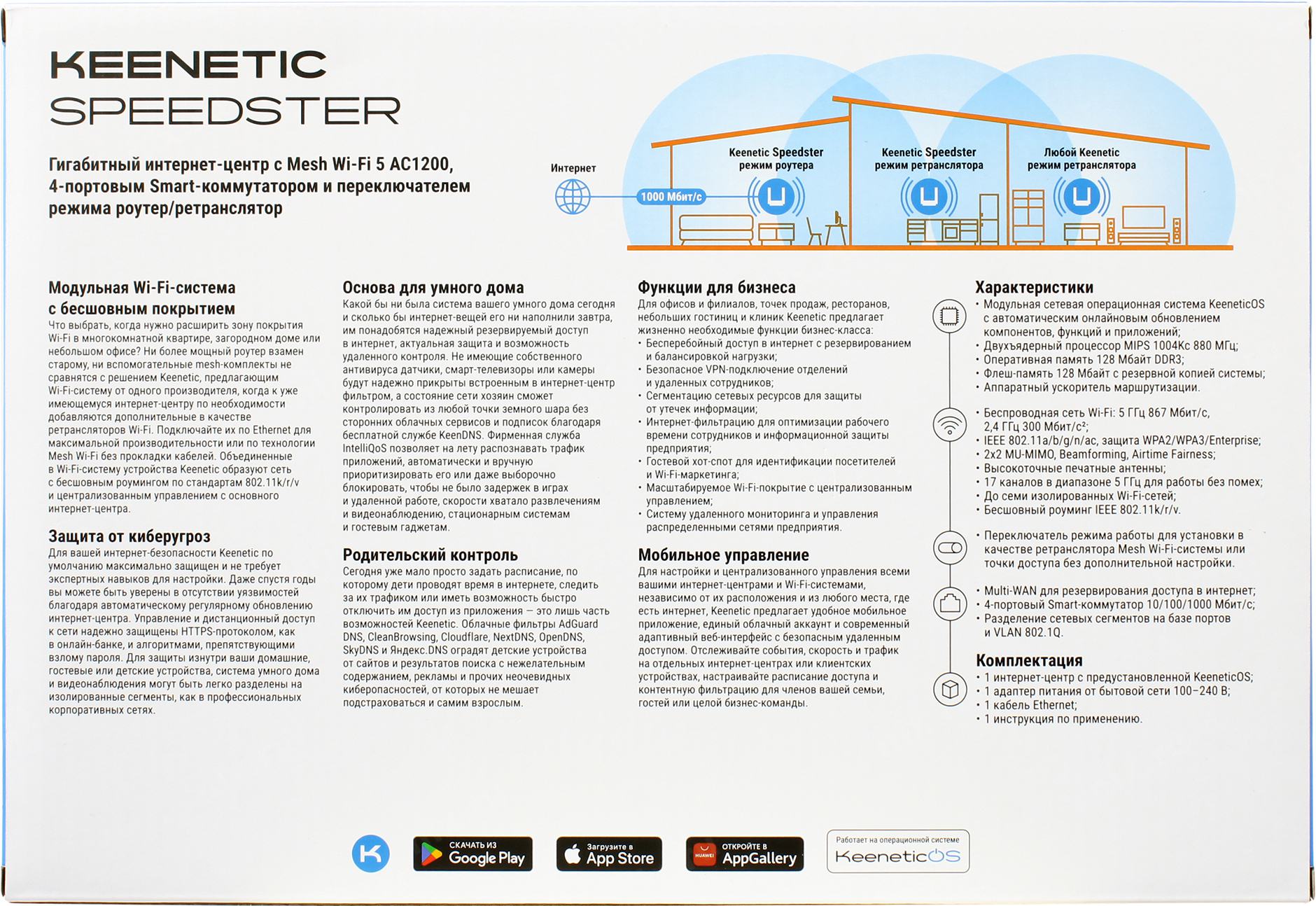 Сетевое оборудование Keenetic Speedster (KN-3013) Гигабитный интернет-центр с Mesh Wi-Fi 5 AC1200, 4-портовым Smart-коммутатором и переключателем режима роутер/ретранслятор | НИКС Екатеринбург