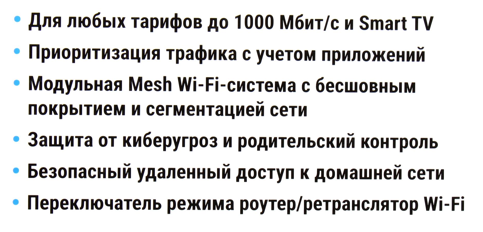 SPI (Stateful Packet Inspection), Защита от DOS атак, Яндекс.DNS, SkyDNS, AdGuard ad blocker (защита от рекламы), Гостевая сеть с авторизацией, Ограничение скорости по клиентам, Расписание доступа по клиентам
