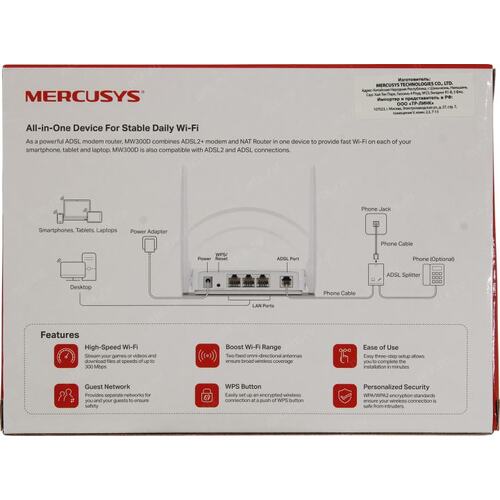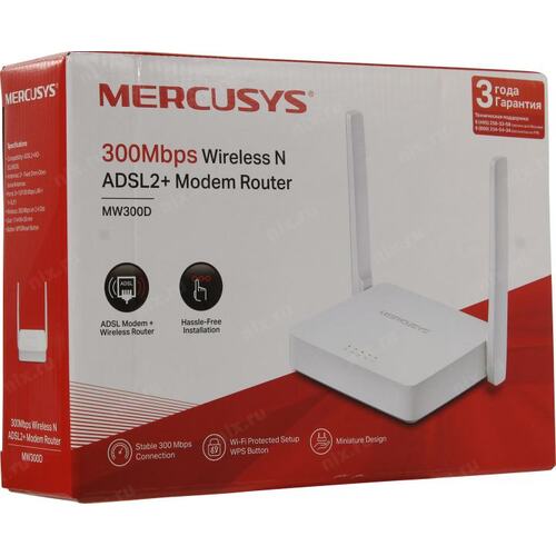 Роутер беспроводной Mercusys MW300D N300 10/100BASE-TX/ADSL белый