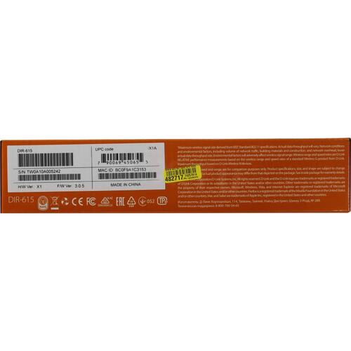 Роутер беспроводной D-Link DIR-615/X1A N300 10/100BASE-TX черный