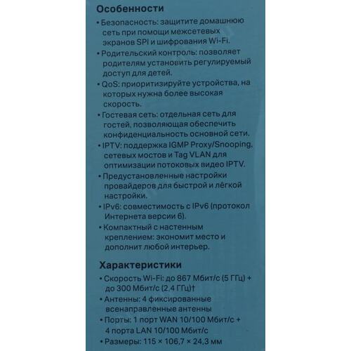 Роутер беспроводной TP-Link Archer C54 AC1200 10/100BASE-TX черный
