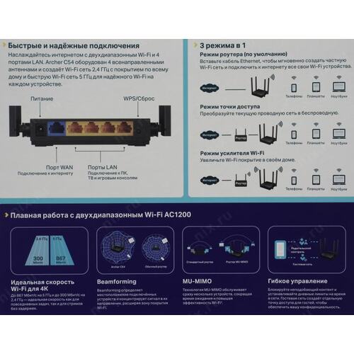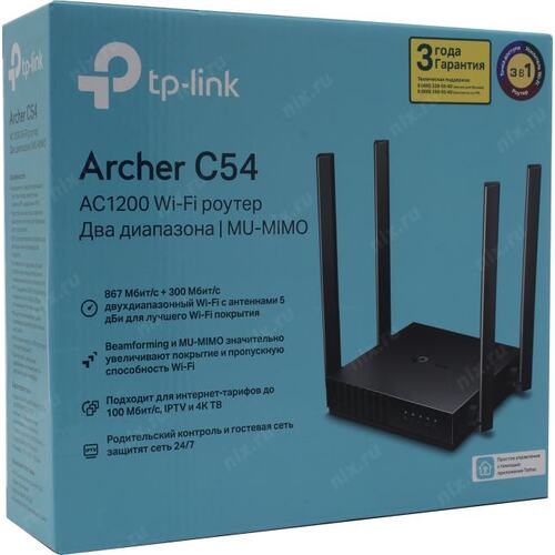 Роутер беспроводной TP-Link Archer C54 AC1200 10/100BASE-TX черный | НИКС Екатеринбург