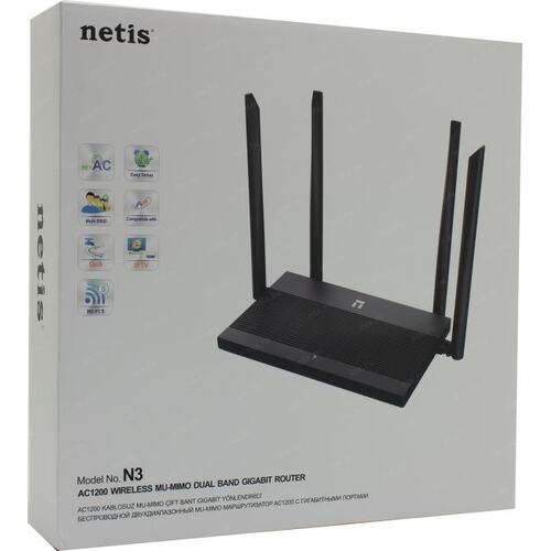 Роутер беспроводной Netis N3 AC1200 10/100/1000BASE-TX черный
